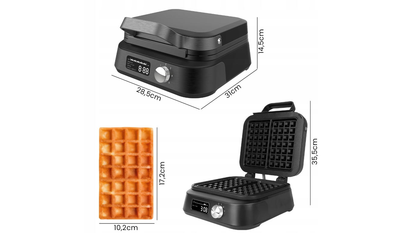 - Dimensiuni fier de calcat de vafe : 31 x 28,5 x 14,5 cm