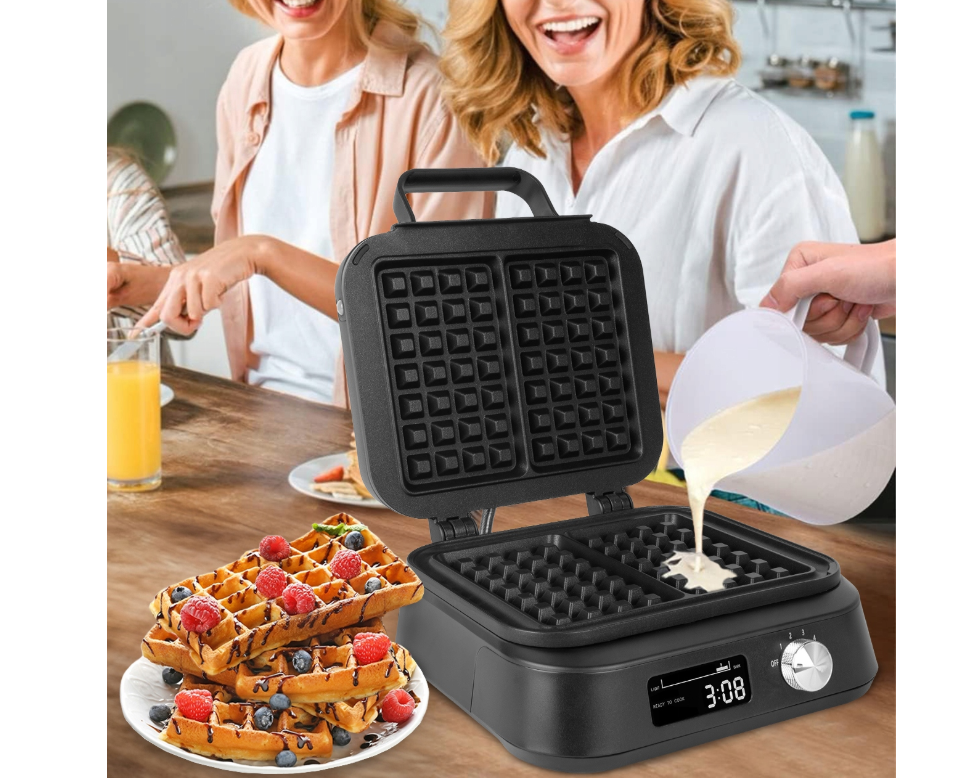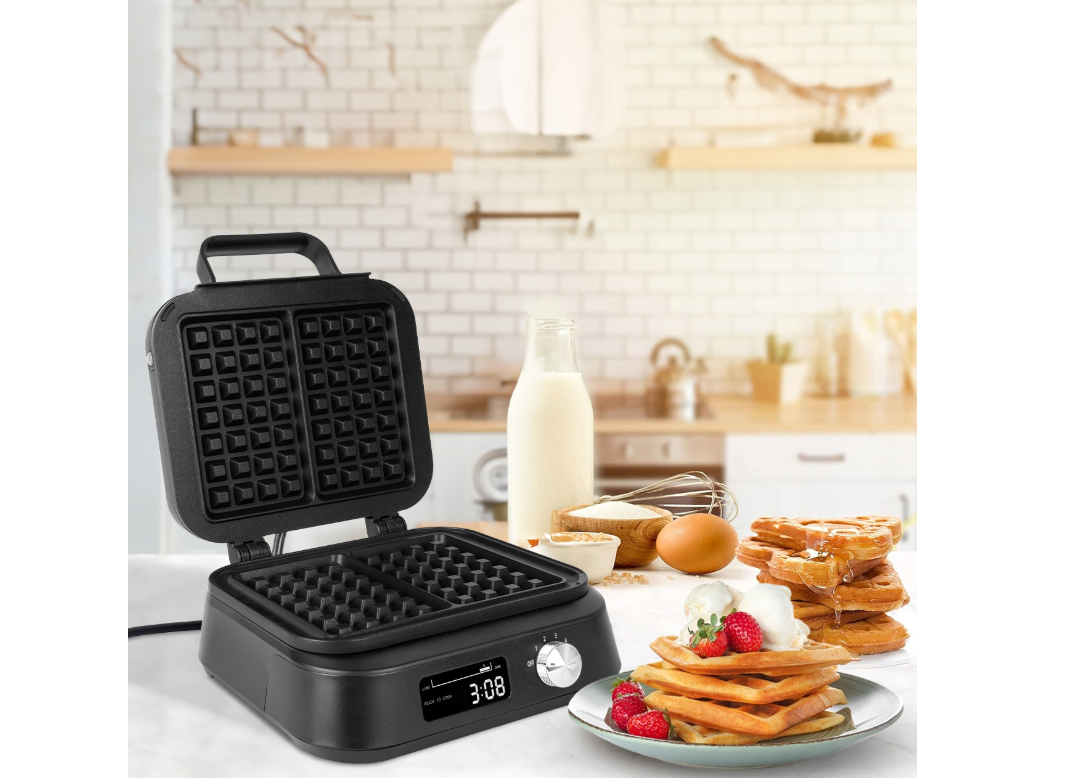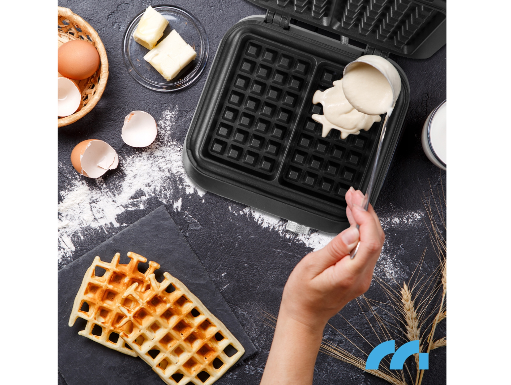 - DESIGN COMPACT SI ELEGANT - Designul modern si elegant al aparatului de vafe se va potrivi perfect in orice bucatarie, iar dimensiunea sa compacta il face usor de depozitat