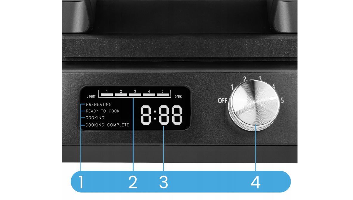 - REGLAREA PUTERII - Reglarea pe 5 niveluri a intensitatii coacerii va permite sa obtineti o crocanta perfecta a vafelor