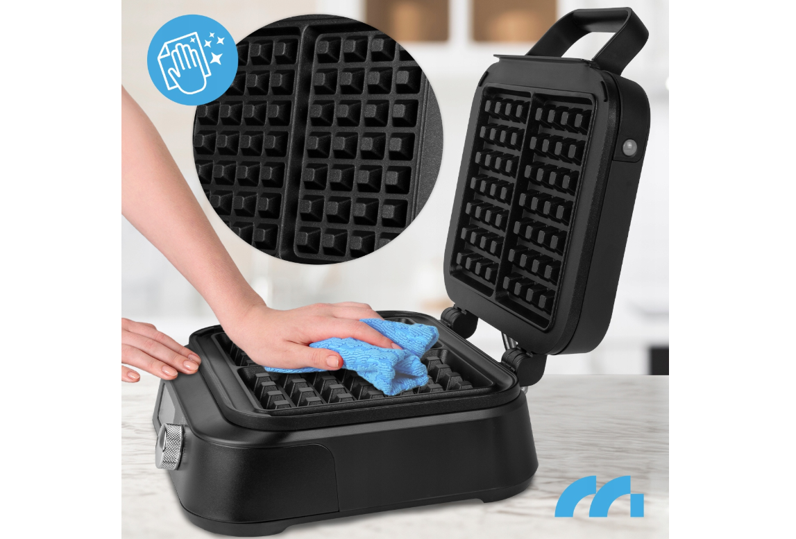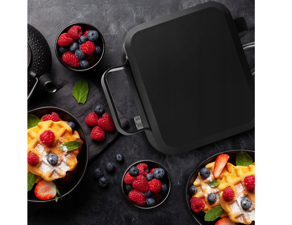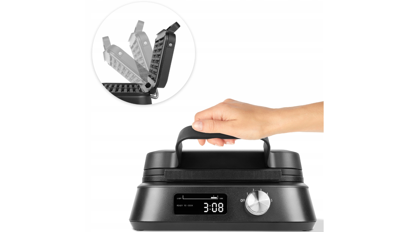 Aparatul de vafe este echipat cu un maner ergonomic care ramane rece chiar si in timpul coacerii. Aceasta solutie garanteaza siguranta si confort, eliminand riscul de arsuri si facand aparatul mai usor de utilizat.