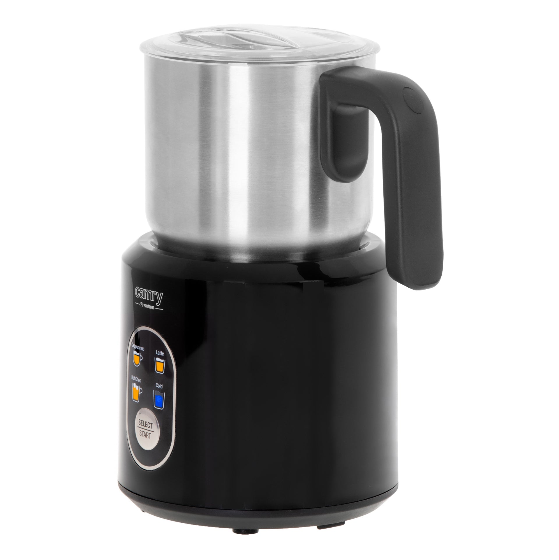 Spumatorul de lapte este un dispozitiv functional care ii va incanta pe iubitorii de cafea latte si cappuccino, precum si pe gurmanzii de ciocolata calda. Produsul pe care il recomandam este potrivit pentru spumarea laptelui si bauturilor pe baza de plante, ceea ce este important avand in vedere interesul tot mai mare pentru inlocuirea laptelui de vaca cu acest inlocuitor. Puteti prepara in aparat 350 ml de lapte fierbinte si 250 ml de spuma de lapte. Invelisul din otel inoxidabil nu afecteaza doar aspectul elegant al spumantului. De asemenea, il face durabil si rezistent la deteriorari mecanice, cum ar fi zgarieturile. Comutatorul iluminat va permite sa selectati rapid cappuccino, latte, ciocolata calda sau spuma rece.
