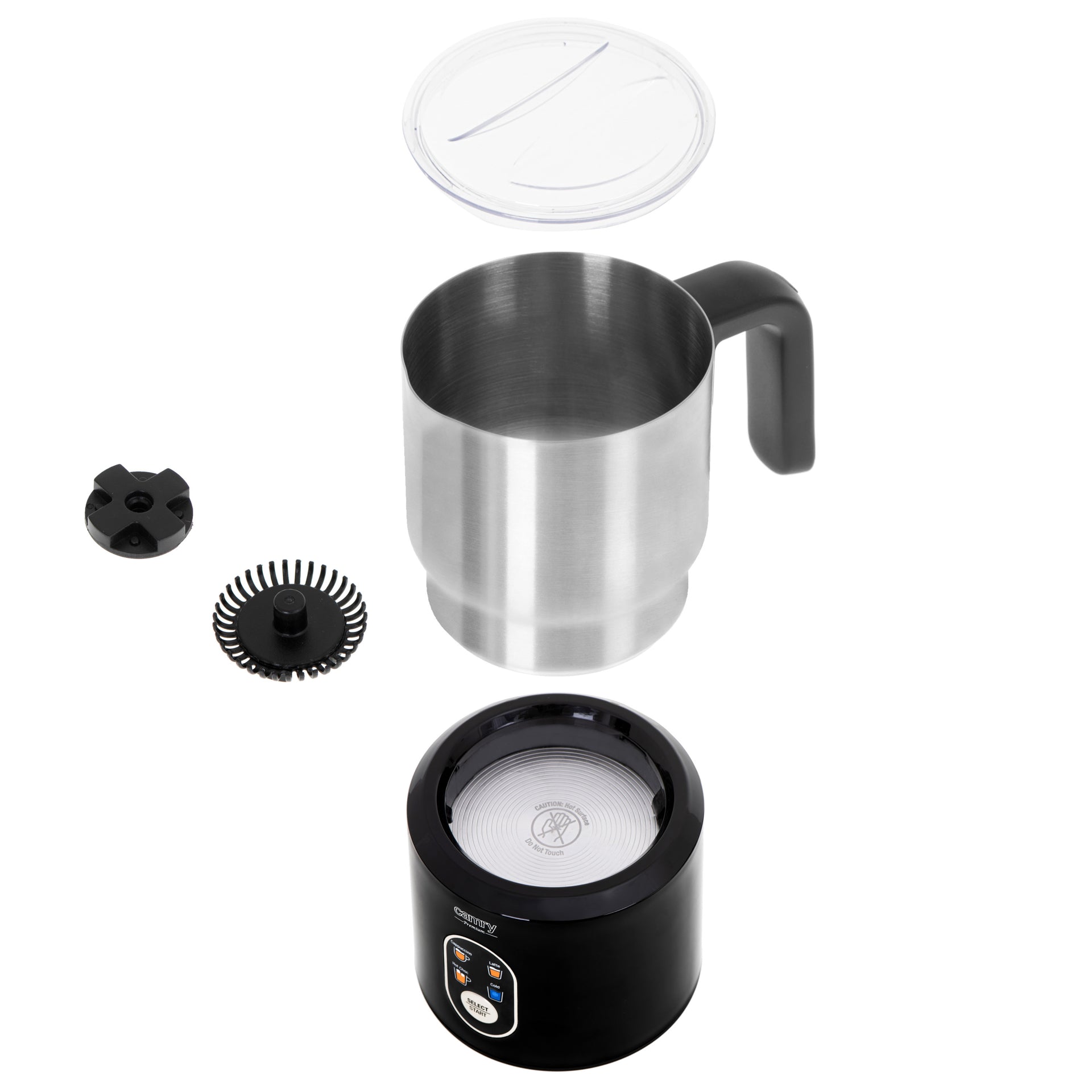 Invelisul din otel inoxidabil nu afecteaza doar aspectul elegant al spumantului. De asemenea, il face durabil si rezistent la deteriorari mecanice, cum ar fi zgarieturile. Comutatorul iluminat va permite sa selectati rapid cappuccino, latte, ciocolata calda sau spuma rece. O cana fara fir si o placa de incalzire in baza faciliteaza manevrarea si turnarea laptelui si spuma. Agitatorul magnetic este de lunga durata, iar oprirea automata si functionarea cu un singur buton il fac un dispozitiv usor de utilizat. Capacul transparent cu sigiliu protejeaza impotriva stropirii si va permite sa observati procesul de spumare a laptelui.