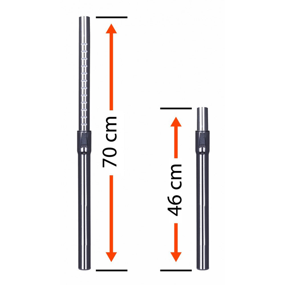 Cu ajutorul unui buton, puteti extinde tubul telescopic in 13 pozitii posibile cu o lungime totala de la 46 cm la 70 cm.