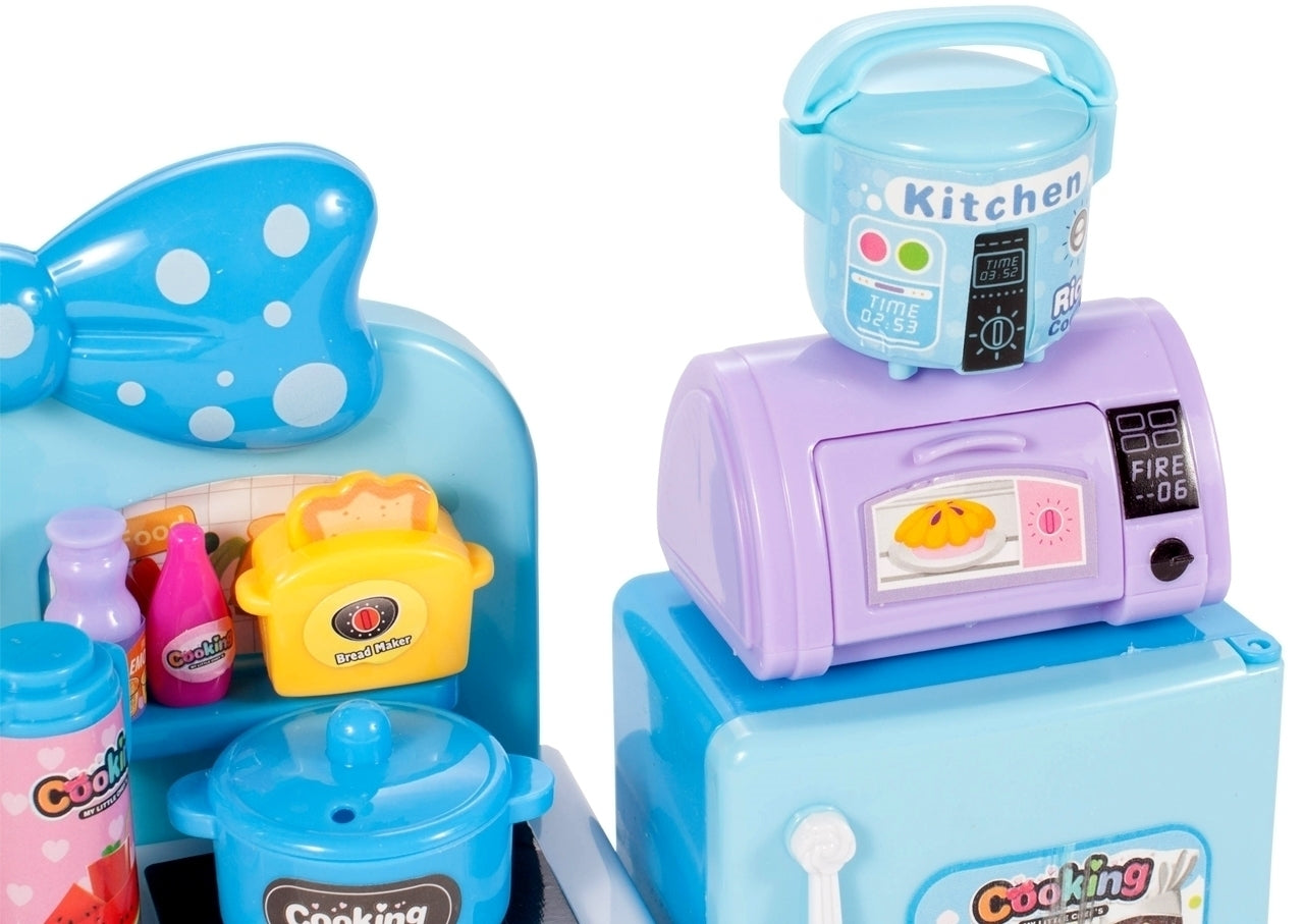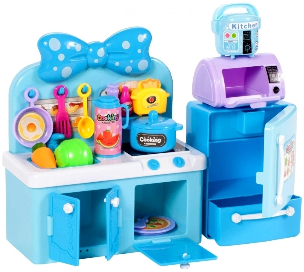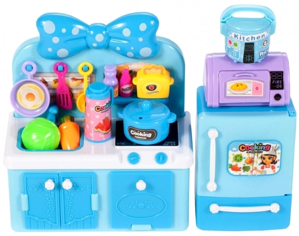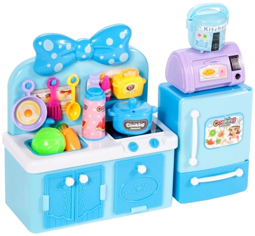 Aceasta minunata bucatarie este cadoul perfect pentru orice fata care iubeste sa-si imite mama în activitatile zilnice de uz casnic. Mini bucataria pentru papusi are numeroase accesorii de bucatarie, un frigider cu microunde si dulapuri de deschidere. O bucatarie pentru papusi poate fi un plus excelent pentru colectia dvs. de jucarii pentru papusi. Bucataria are chiuveta, aragaz, cuptor si dulap dublu, printre altele. Frigiderul are un congelator si un sertar extensibil.