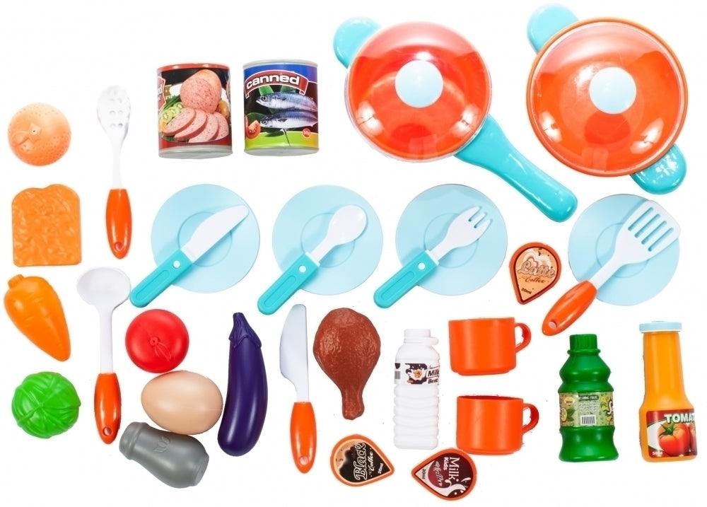 Setul include un cuptor deschis, aparat de cafea si o masa auxiliara. Exista rafturi suplimentare langa bucatarie. Accesoriile includ: oale, farfurii, tacamuri, legume si cutii cu „mancare”.