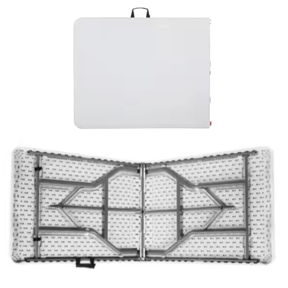 Aceasta masa pliabila practica si robusta, de 180 x 74 cm, este o solutie indispensabila pentru tot felul de petreceri, evenimente si reuniuni de familie, precum si pentru uz casnic si in gradina. Datorita capacitatii de a se plia in jumatate si a manerului de transport incorporat, masa este extrem de mobila si usor de transportat si depozitat.