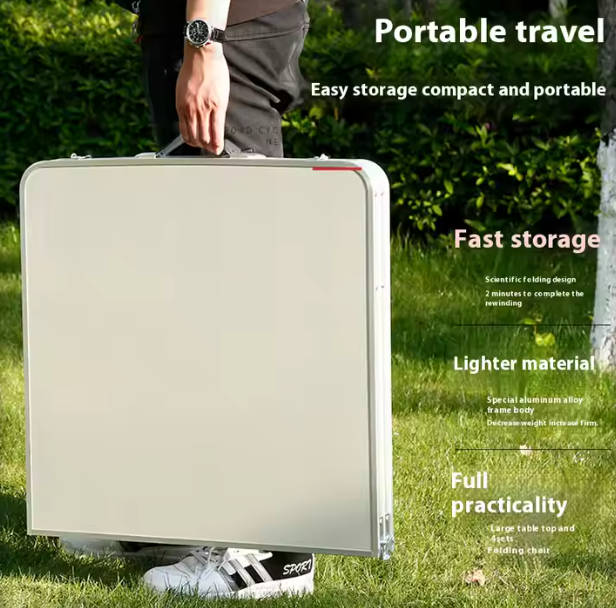 Designul pliabil al mesei si scaunelor, care se pliaza intr-o valiza compacta cu maner, face ca intregul set sa fie extrem de usor de depozitat si transportat. Acest lucru este important mai ales atunci cand calatoriti, cand fiecare centimetru din portbagaj conteaza.