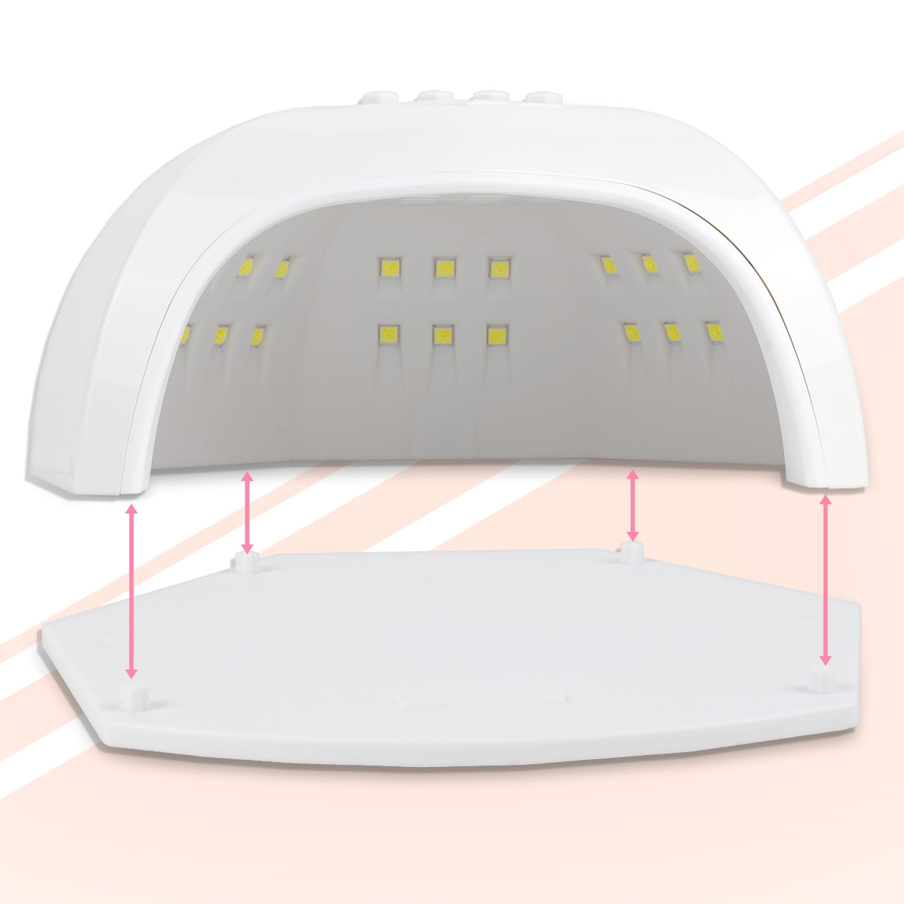 Lampa este echipata cu functia SMART SENSOR 2.0, care retine ultima ora setata. Pentru a porni functia Senzor inteligent, trebuie doar sa tineti apasat modul de timp selectat timp de 2 secunde. Acest lucru este foarte convenabil pentru produse cu acelasi timp de intarire.