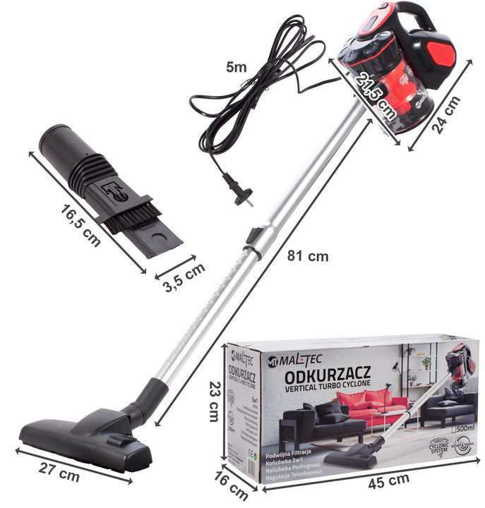 Produs original de la distribuitorul polonez! Aspirarea nu a fost niciodată atât de distractivă! Imaginați-vă echipamente confortabile și ușoare pe care le puteți lua fără efort pe scări și ascundeți în fiecare colț al casei. Veți scăpa de obligația de a cumpăra pungi suplimentare și de schimbul persistent de pungi. Mutați-vă liber prin casă și nu vă faceți griji cu privire la obstacole. Un cablu lung de 5 metri vă va permite să aspirați oriunde. Și imediat ce decideți să vă aspirați mașina sau canapeaua, echipamentul dvs. se va transforma într-un aspirator portabil și vă va ajuta fără probleme! Acum este totul la îndemână! Verifică și vezi singur! Prețul accesibil, ușurința utilizării și manopera atentă sunt foarte apreciate de toate părțile interesate și clienți.