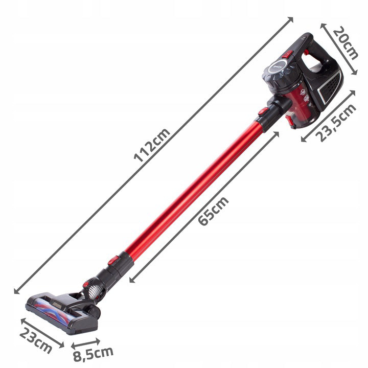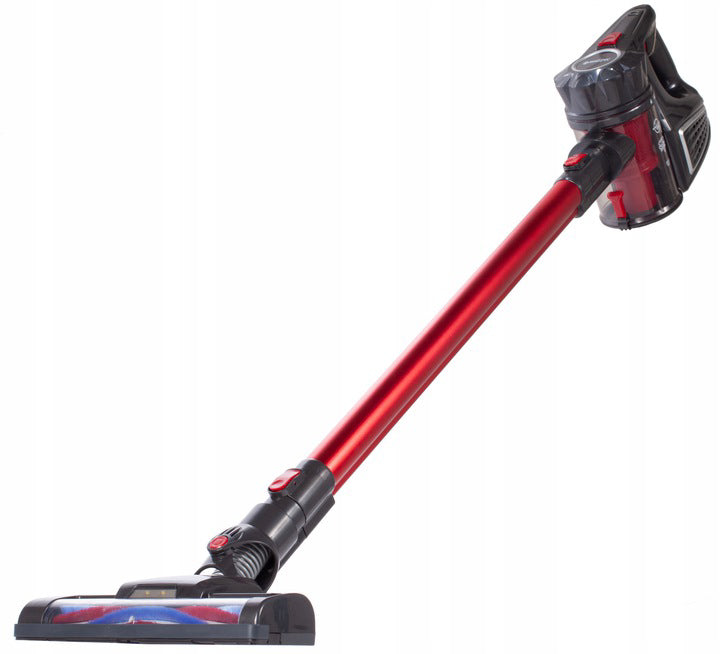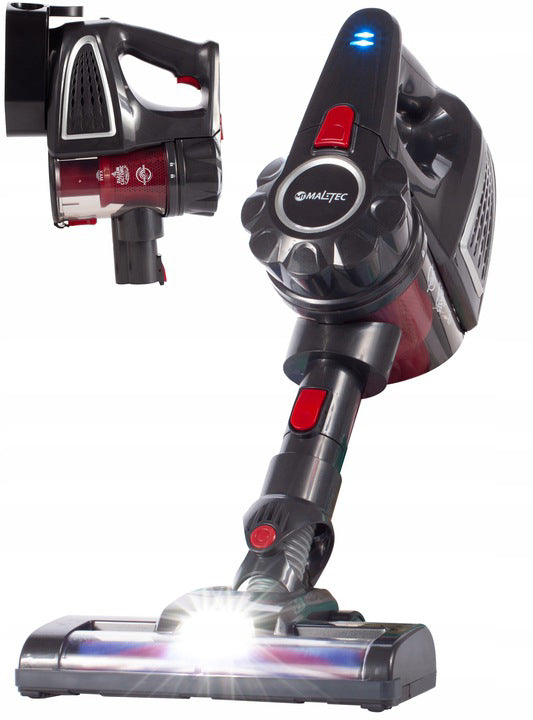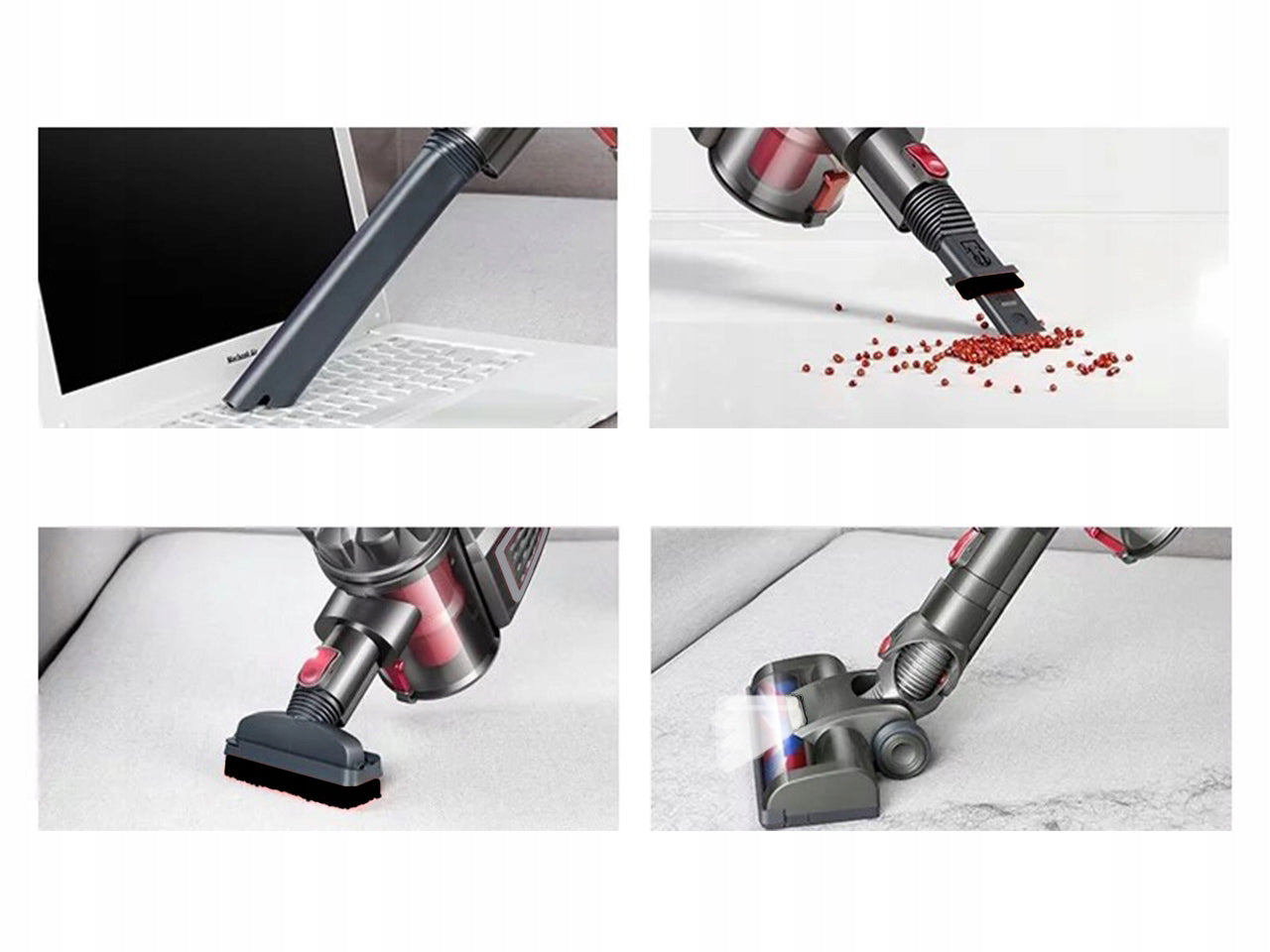 Un aspirator încărcat este întotdeauna în așteptare. Nu trebuie să pregătiți pungi sau să conectați cabluri! Înainte de utilizare, pur și simplu folosiți butonul roșu pentru a atașa vârful potrivit pentru noi și porniți aspiratorul cu un buton convenabil pe mâner. Toate vârfurile atașate pot fi atașate în mod liber, atât cu extensia, care este o țeavă metalică, cât și direct la partea principală a aspiratorului. Totul depinde de nevoile noastre. Pentru a opri dispozitivul, țineți apăsat butonul de pe mâner.