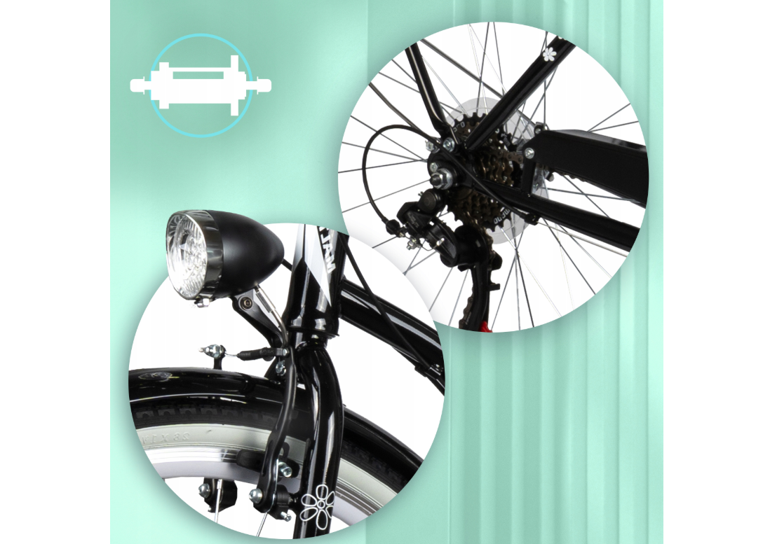 - Siguranta ciclistului este asigurata de franele clasice V-brake pe fata si de o frana coaster pe spate.