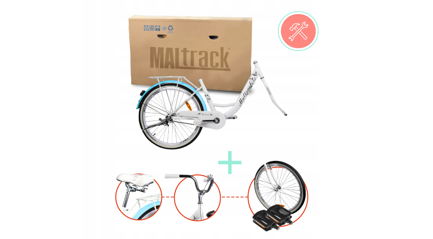 - Bicicleta este preasamblata, trebuie doar sa insurubati ghidonul, roata fata, pedalele si saua. Dupa asamblarea bicicletei, trebuie sa faceti ajustarile complete.