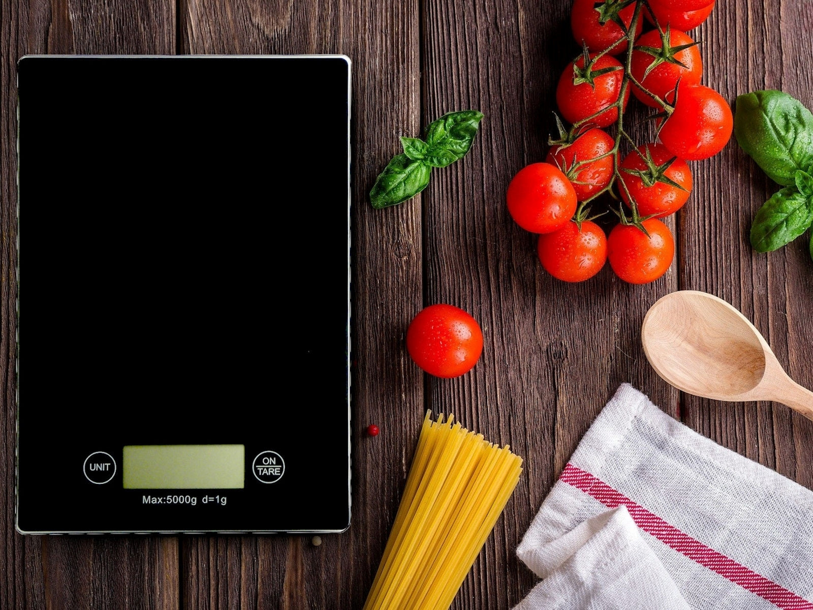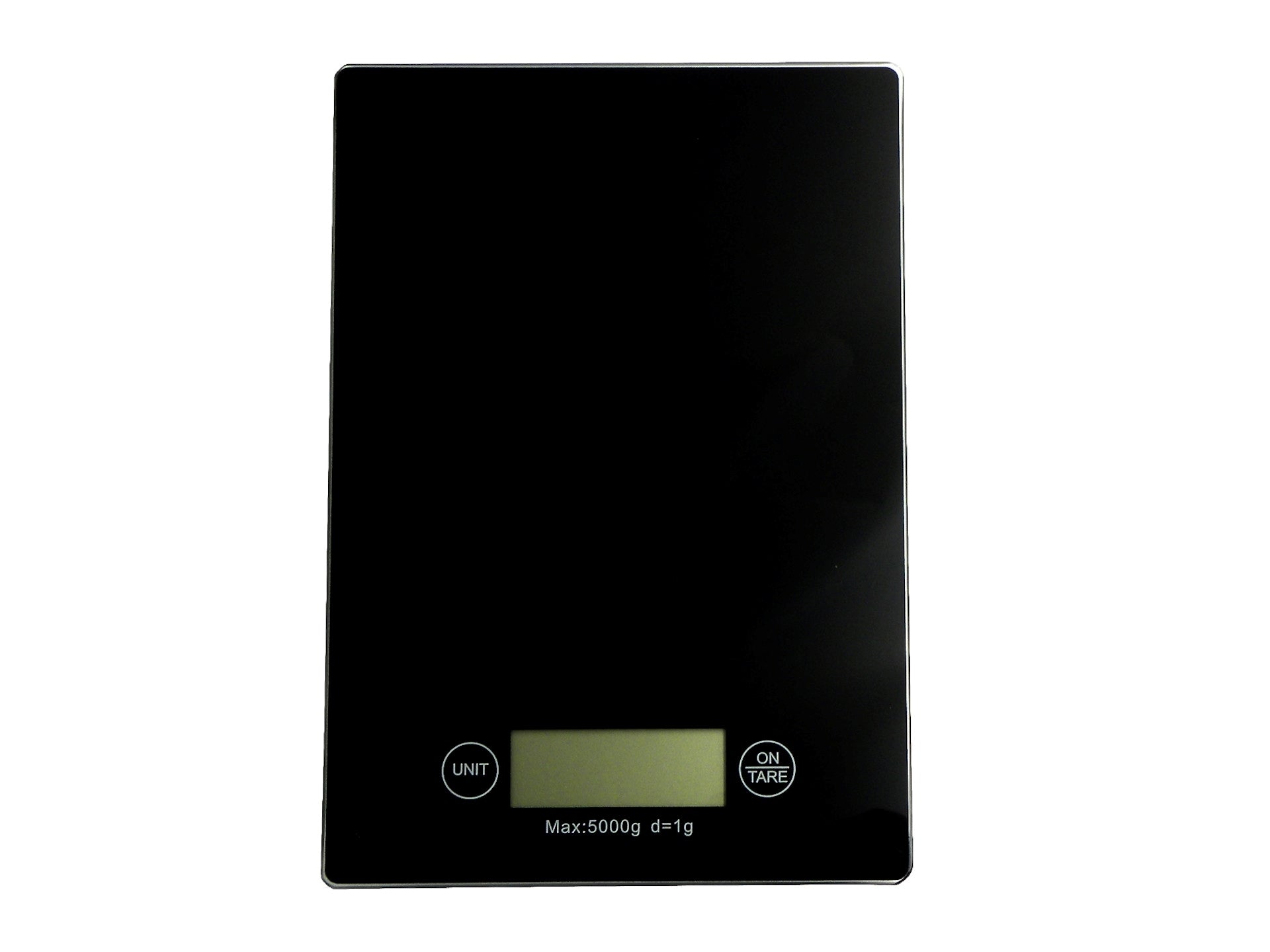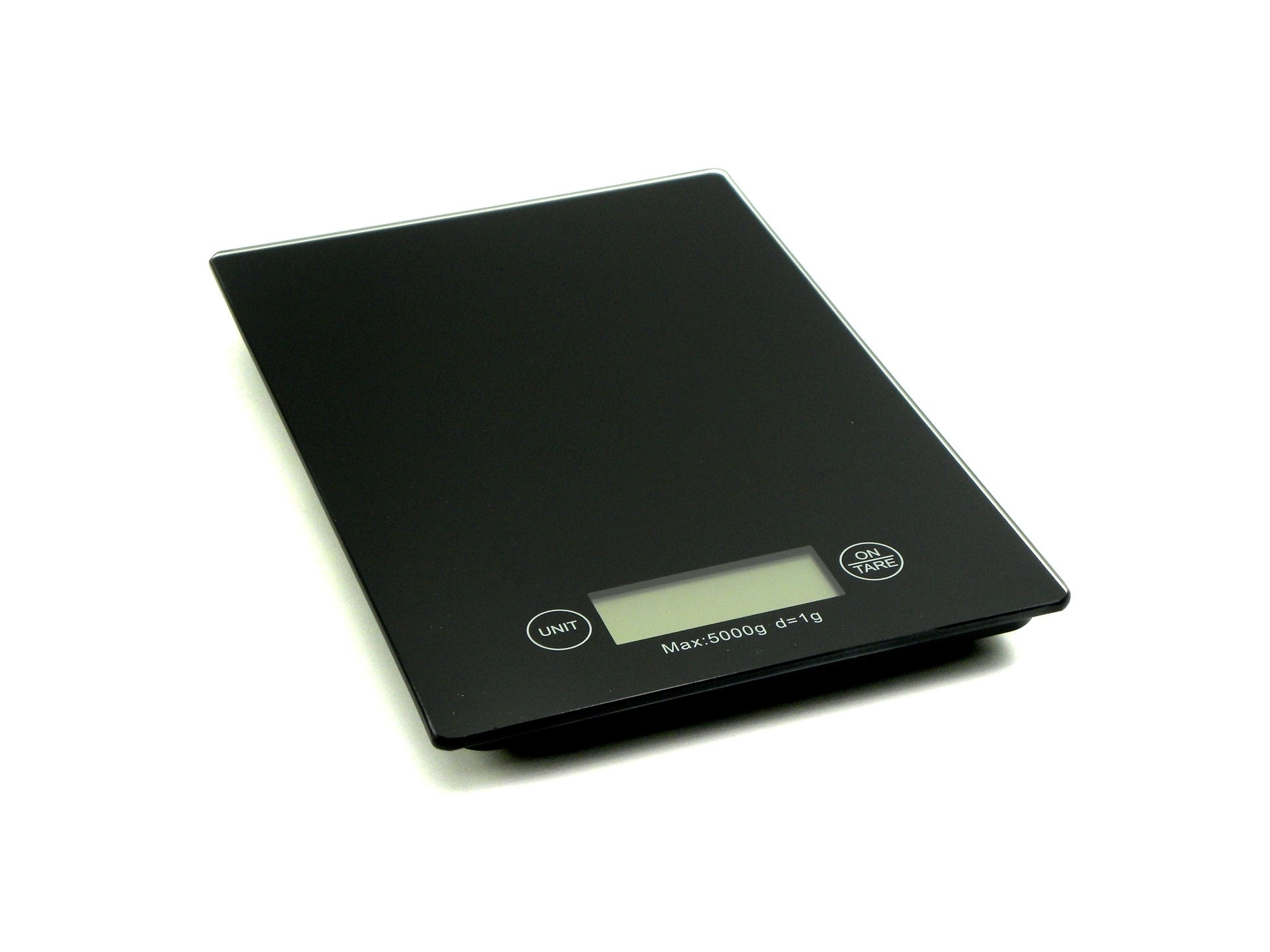 Cântar de bucătărie din sticlă cu ecran LCD.