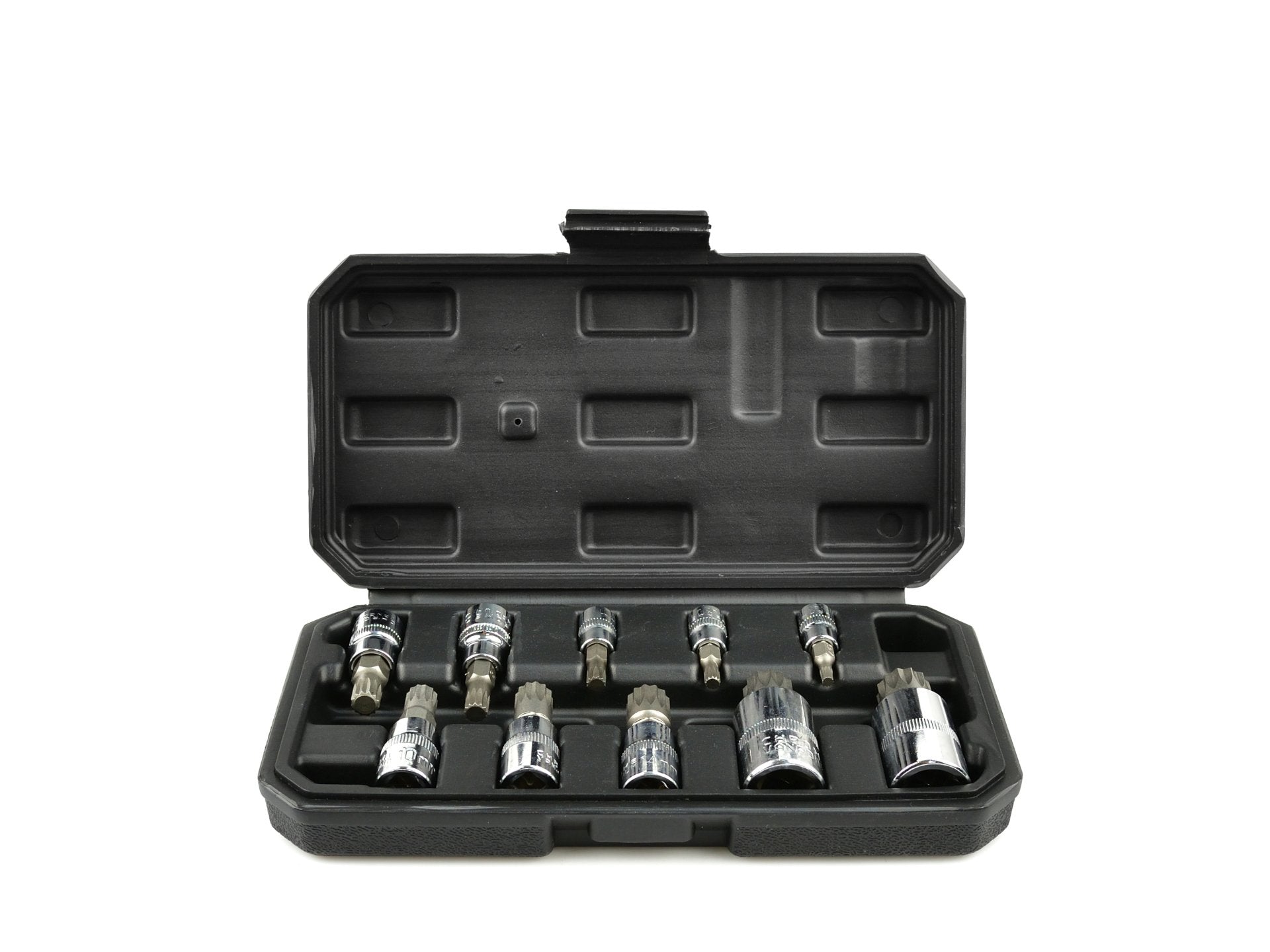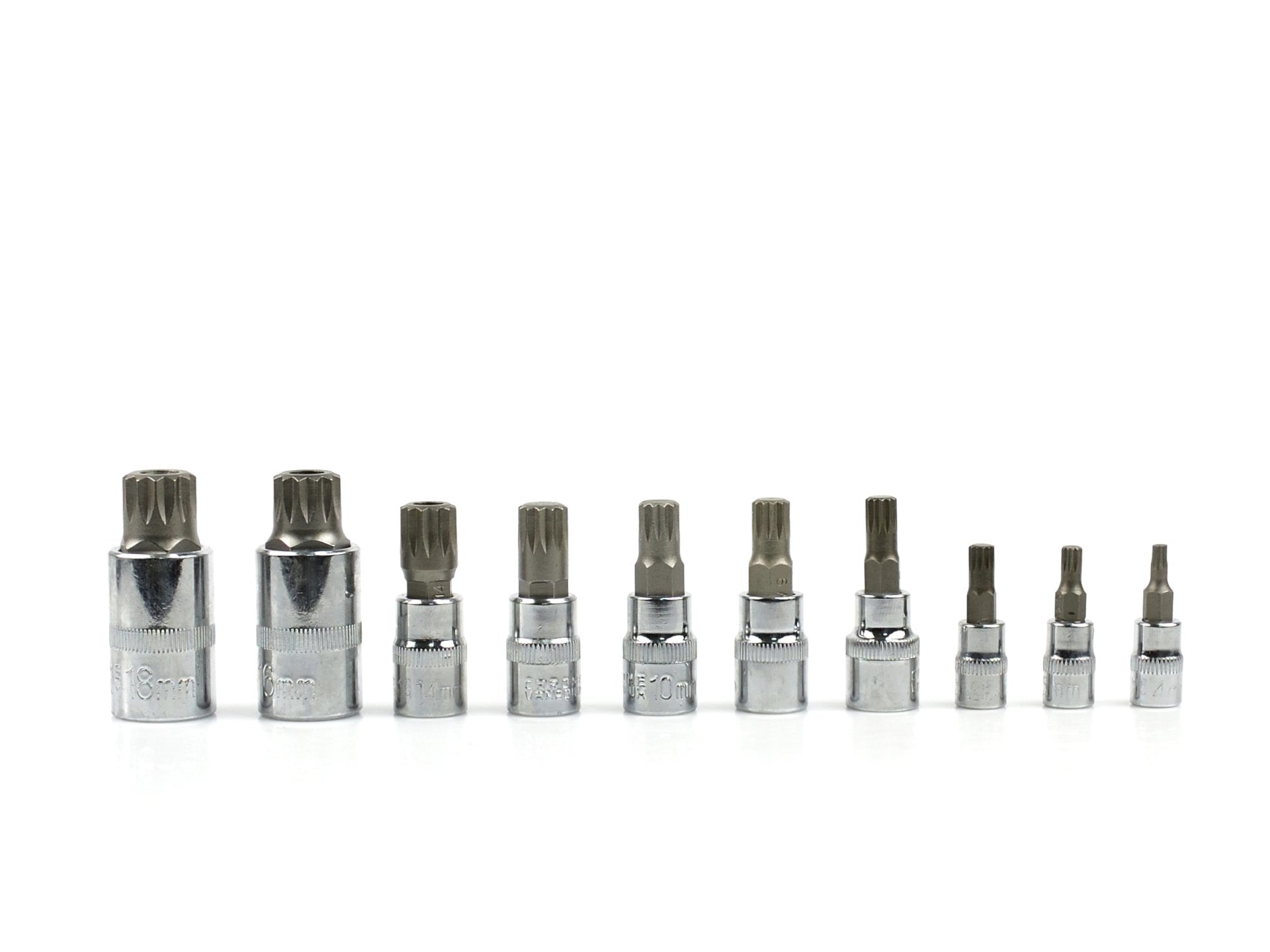 Un set de tubulare cu tija canelara de dimensiuni M4-M18 10 buc. Fabricate din otel de scule CrV durabil . Setul include prize cu tija 1/4", 3/8", 1/2"