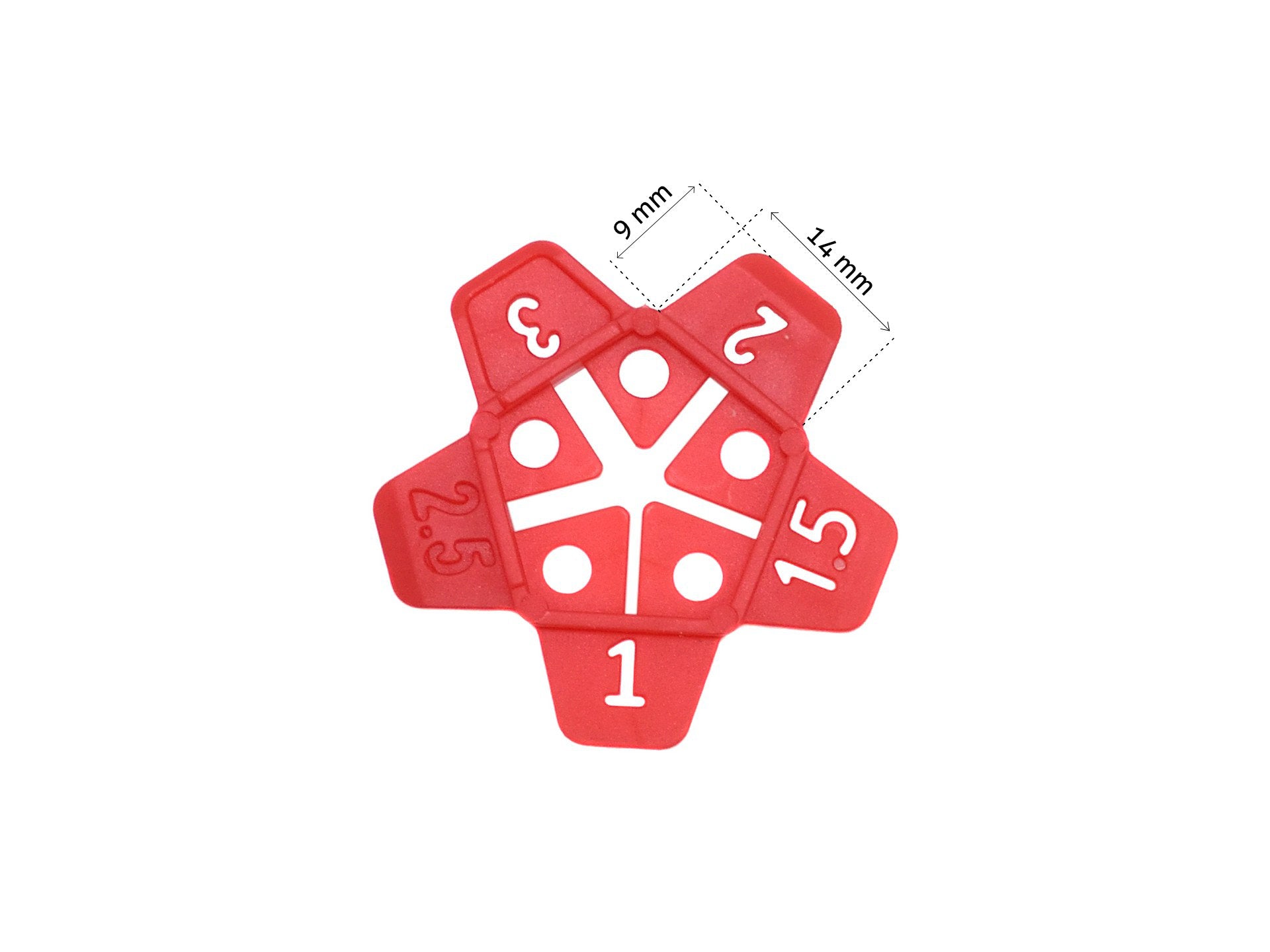 Sistem universal de distantare a placilor. Set reutilizabil, unde fiecare brat are o latime diferita. Permite executarea imbinarilor cu latimea de: 1mm / 1,5mm / 2mm / 2,5mm / 3mm. Continutul pachetului: 100 de bucati.