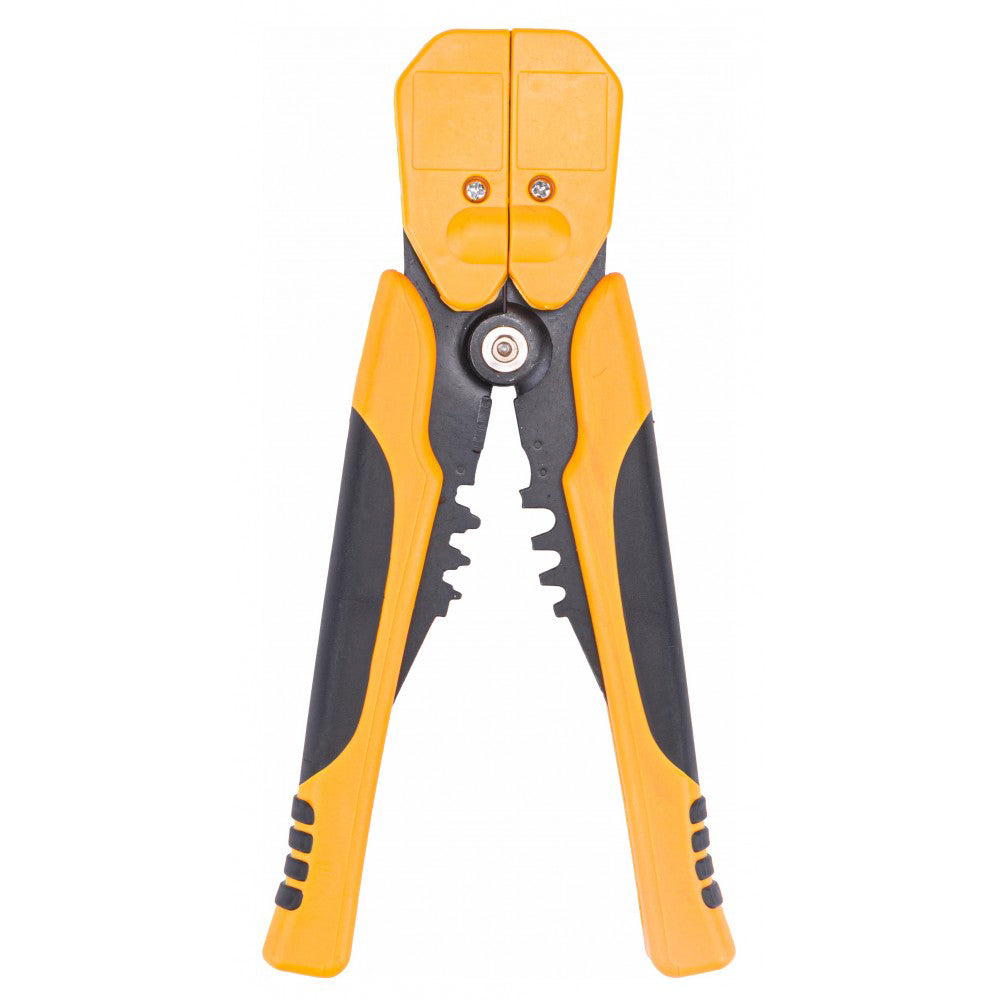 - Setul include clesti automati cu mecanism de clichet reglabil si matrite interschimbabile potrivite pentru cinci tipuri de conectori electrici. Se inlocuiesc matritele prin desurubarea a doua suruburi.