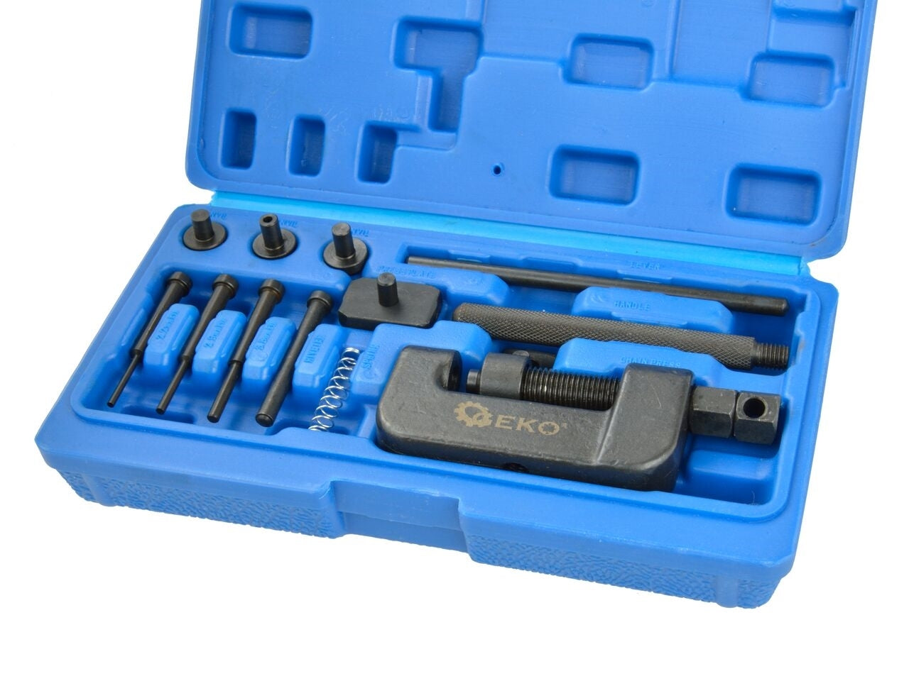 Mașină de sertizat și de nituit pentru lanțuri de motociclete. Proiectat pentru sertizarea și ruperea lanțurilor de distribuție și a lanțurilor de acționare. Setul este util în atelierele de motociclete, biciclete și mașini.