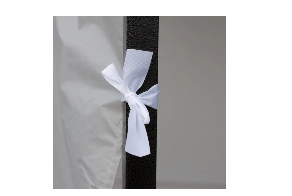 Cortul are 3 pereti, asa ca ii poti monta liber. Fiecare perete are patru panglici de atasat (legat).