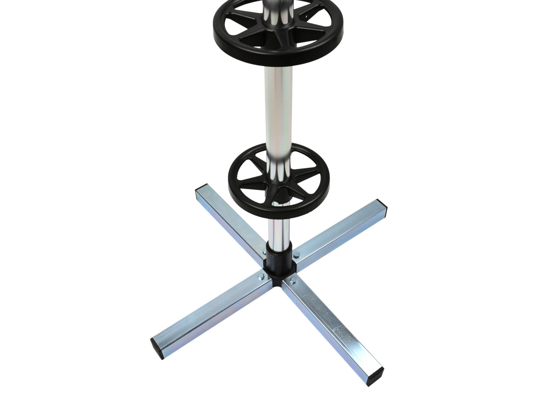 Standul ține până la patru roți puse una peste alta. Cadrul este din aluminiu, în timp ce distanțierele sunt din plastic. Echipat cu suporturi și șuruburi de siguranță, previne deformarea anvelopelor și deteriorarea mecanică.