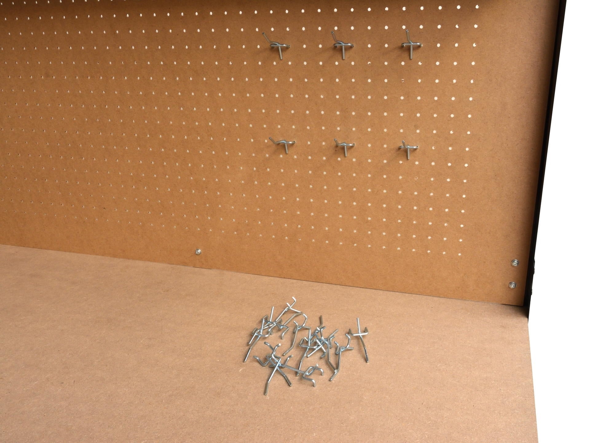 Banc de lucru cu sertare cu placă perforată verticală face posibilă atârnarea celor mai necesare unelte, astfel încât acestea să fie întotdeauna la îndemână.