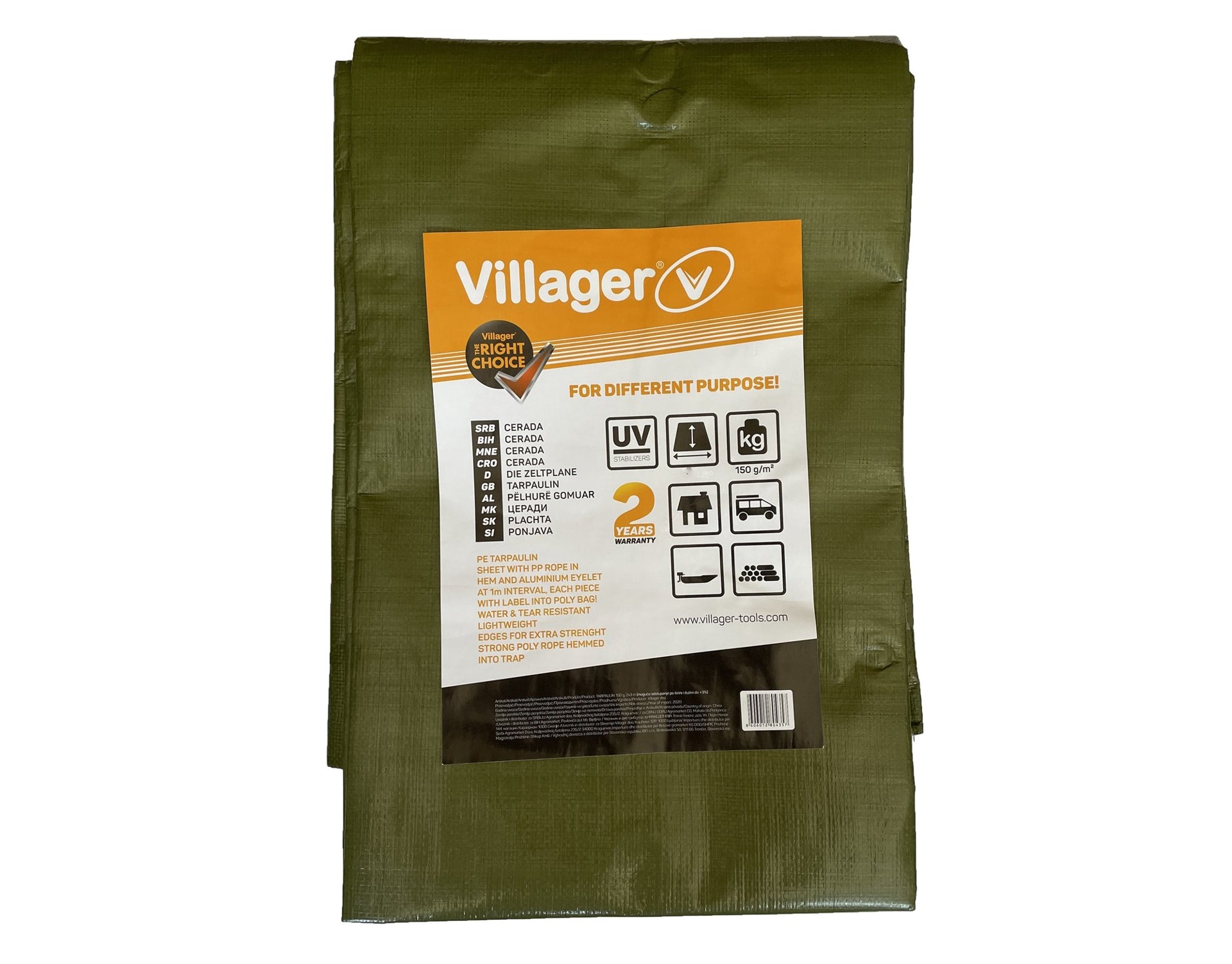 Prelata de inalta calitate cu ochi VILLAGER pentru utilizare universala. Prelata are ochiuri metalice la intervale de 1m. Prelata este usoara si este potrivita, de exemplu, pentru acoperirea masinii, lemnului, ambarcatiunii. Rezista la apa si la rupere.
