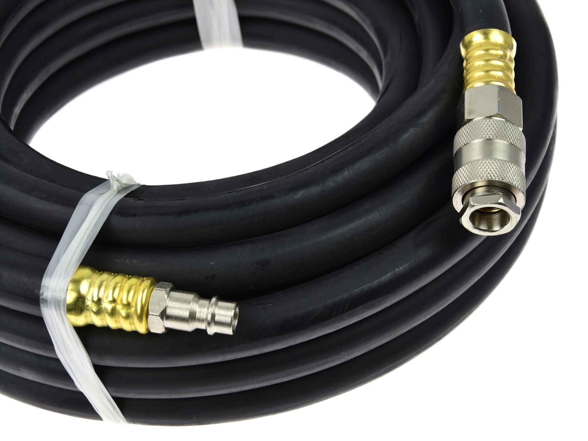 Furtun profesional din cauciuc pneumatic, lung de 10 metri. Cablul este fabricat din cauciuc rezistent la ulei si abraziune. Cauciucul flexibil previne deformarea permanenta. Cablul este complet, prevazut cu un conector rapid si o priza standard.