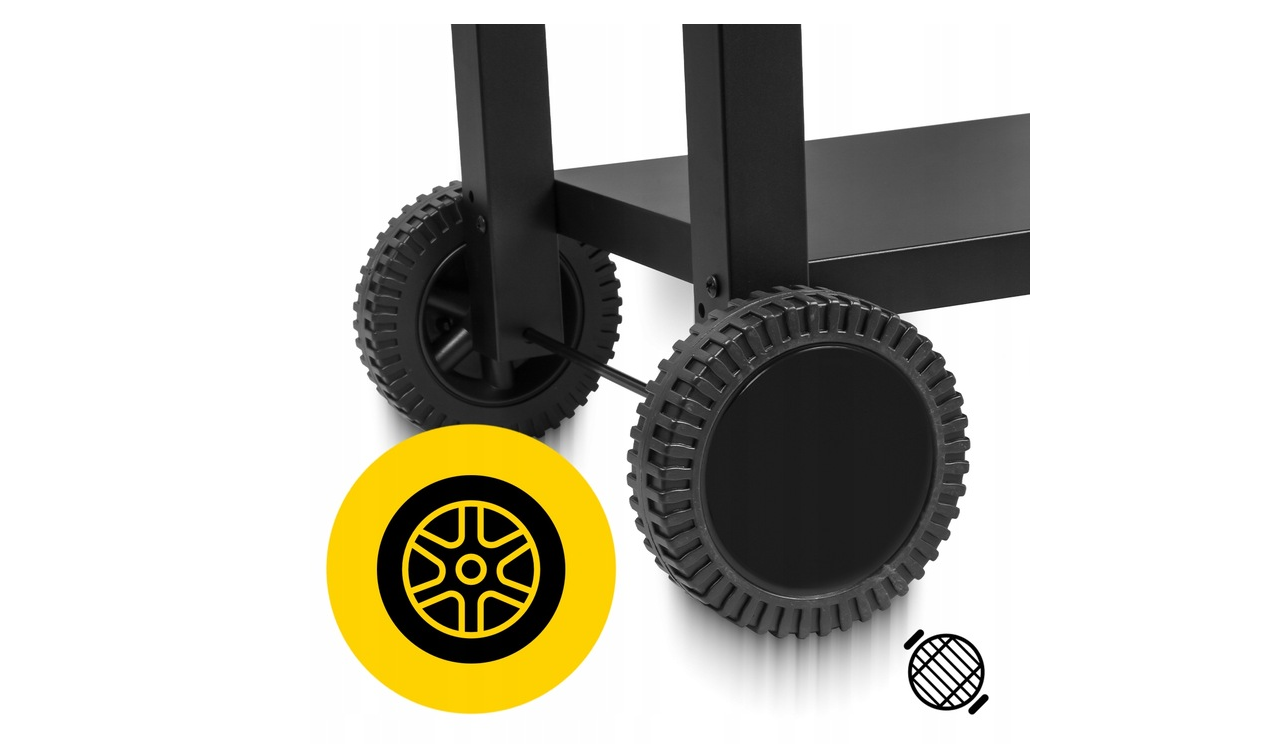 Gratarul este echipat cu doua rafturi laterale mari si un raft suplimentar inferior , care va permit sa depozitati in mod convenabil alimente, condimente, feluri de mancare si accesorii necesare intr-un singur loc, mereu la indemana.