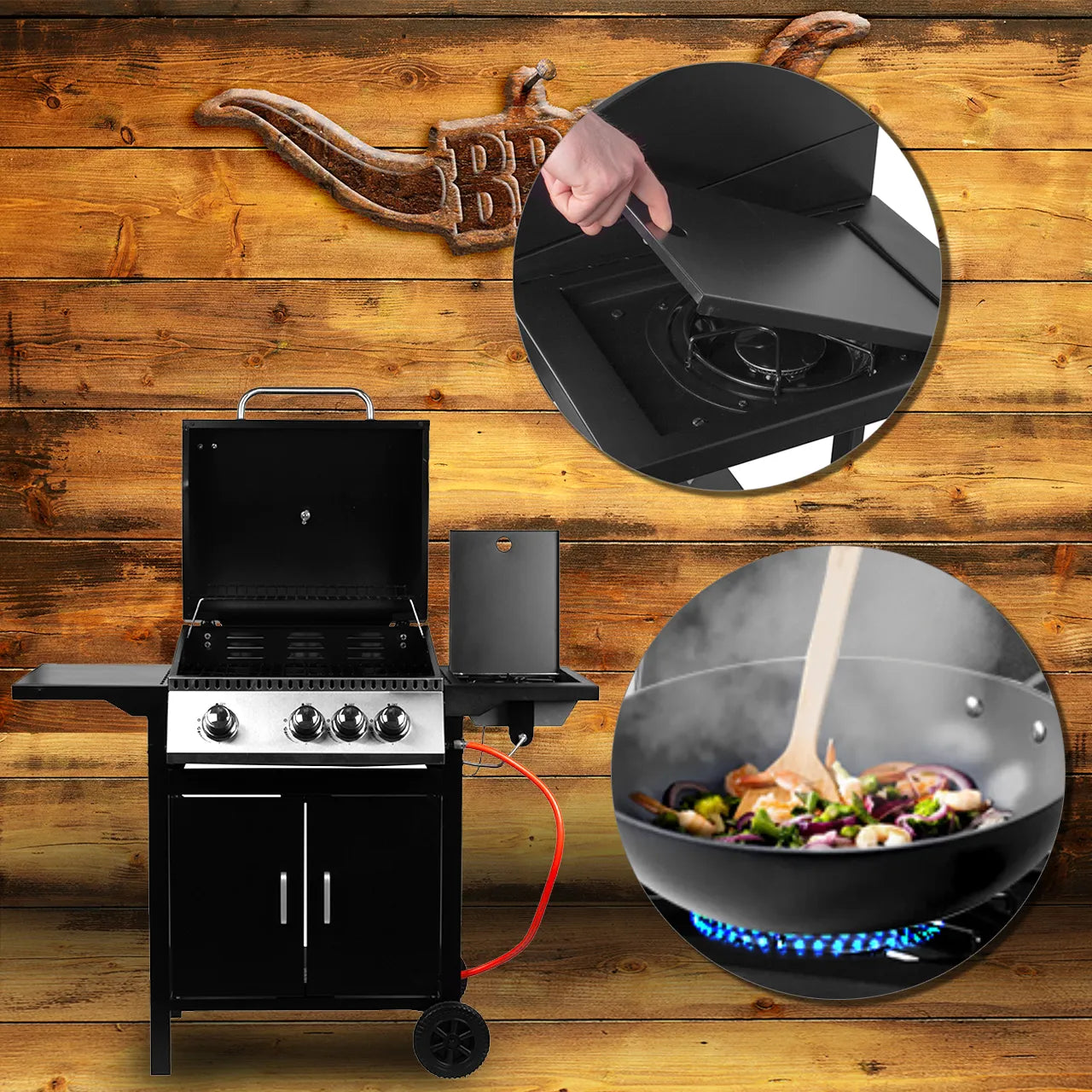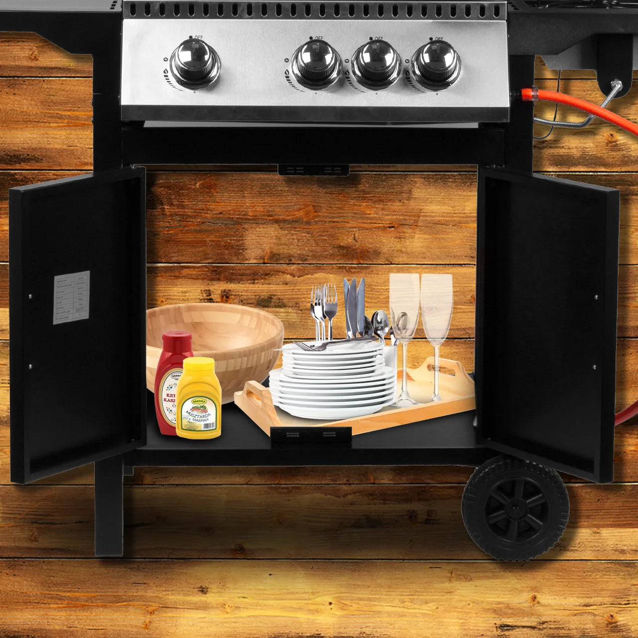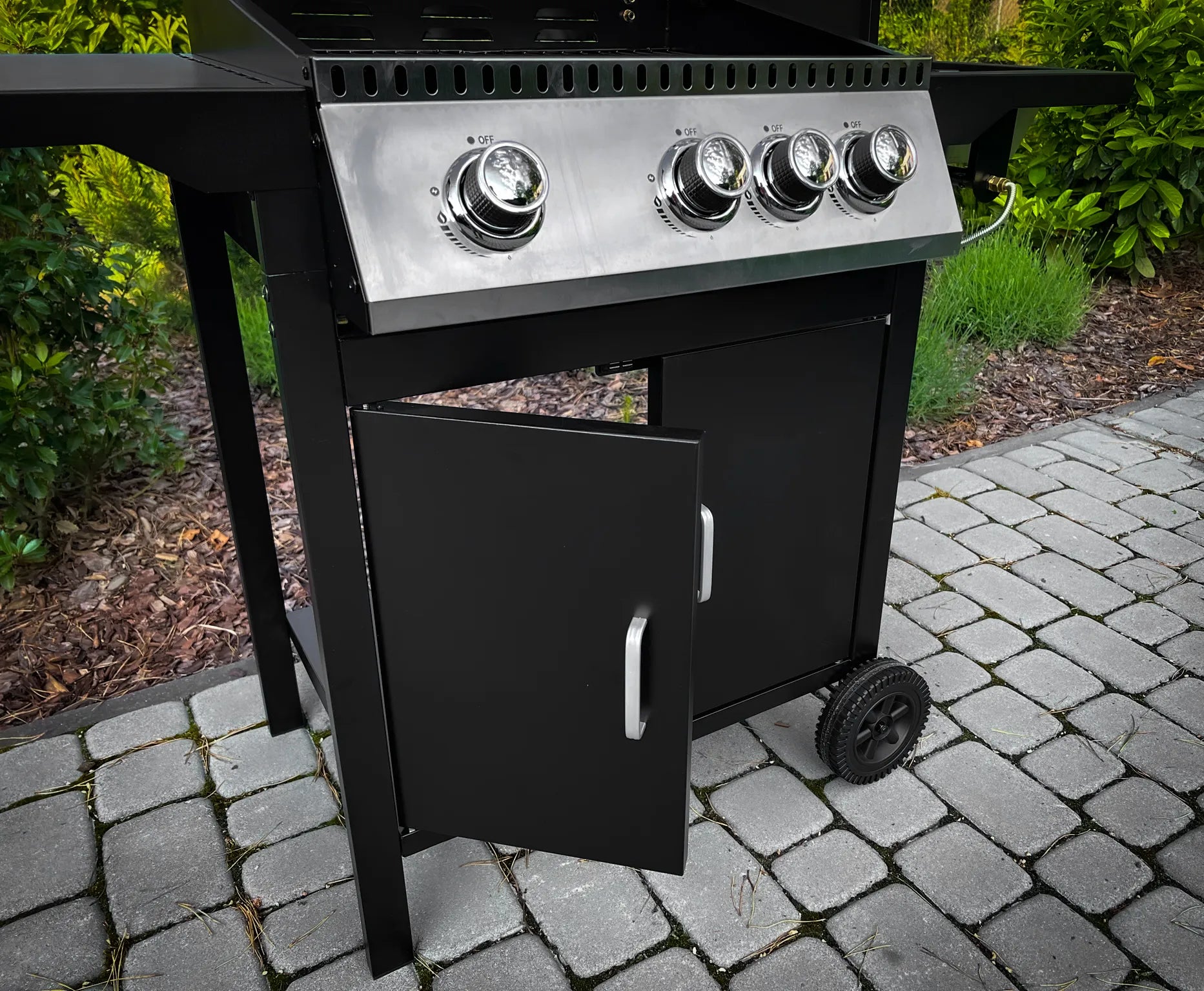 In plus, gratarul are un dulap cu incuietoare unde puteti depozita accesorii, mentinand in acelasi timp efectul vizual.