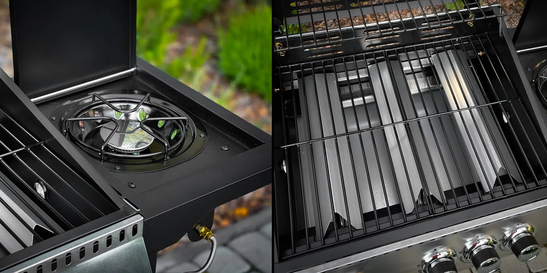 - Exista un arzator suplimentar pe gratar, cu un buton separat.