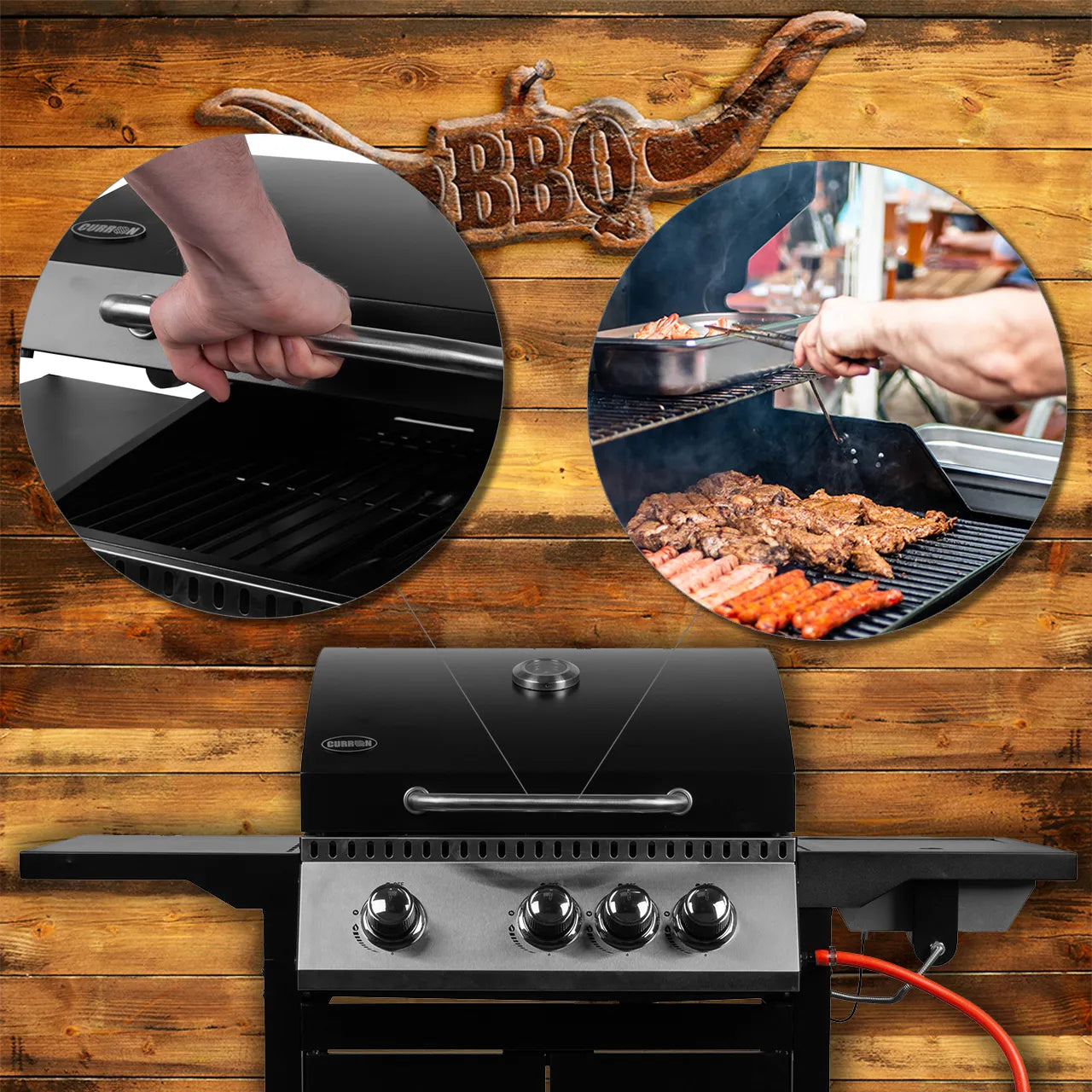 Langa gratar este instalat un raft suplimentar la indemana, care ne va permite sa pastram alimentele, condimentele, vasele si accesoriile necesare intr-un singur loc, aproape unele de altele.