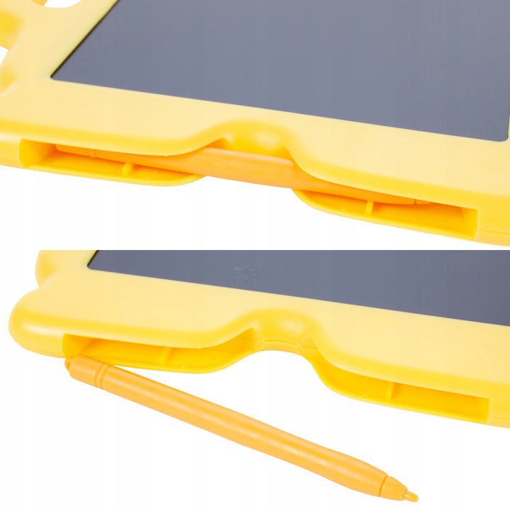 O placa digitala cu afisaj LCD este o jucarie excelenta pentru noul iubitor de desen. Tableta electronica accepta nenumarate imagini, trebuie doar sa apasati un buton si imaginea desenata va disparea si puteti începe urmatoarea! Tabla nu necesita foi, iar desenul poate fi sters cu un singur buton situat între ochii pinguinului. Ecranul sensibil la presiune creeaza o linie groasa si subtire - se simte ca si cum ai scrie pe hartie reala. Jucaria are un buton glisant care blocheaza posibilitatea curatarii ecranului. Datorita acestei functii, vom preveni stergerea accidentala a unei imagini pictate sau a notelor salvate.