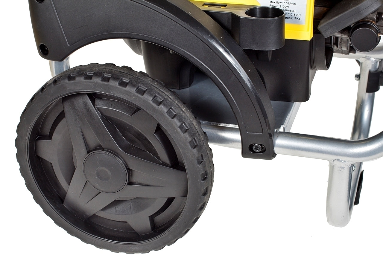Roțile confortabile, mari, ușurează deplasarea dispozitivului, ceea ce nu limitează domeniul furtunului.