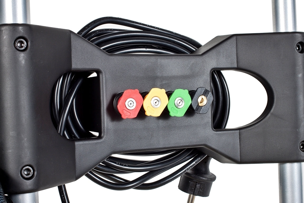 Vârful care scoate cel mai puternic jet de apă. Folosim capatul roșu pentru murdăria cea mai puternică pe materiale dure, de exemplu oțel, piatră, cauciuc dur, mașini agricole, echipamente pentru grădinărit, sisteme de canalizare etc.