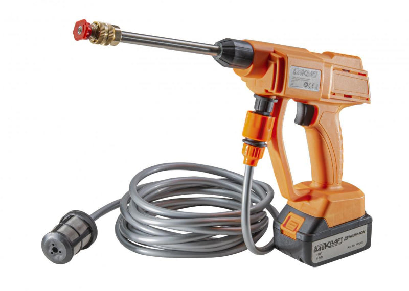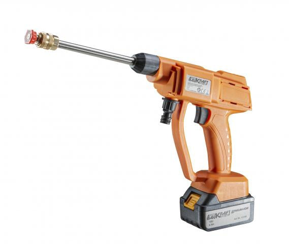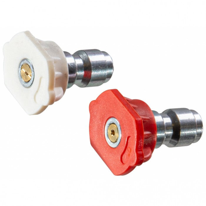 Este echipat cu o duza (rosu) pentru jet puternic si cu o duza (alba) pentru pulverizarea jetului de apa la un unghi de 40 °.