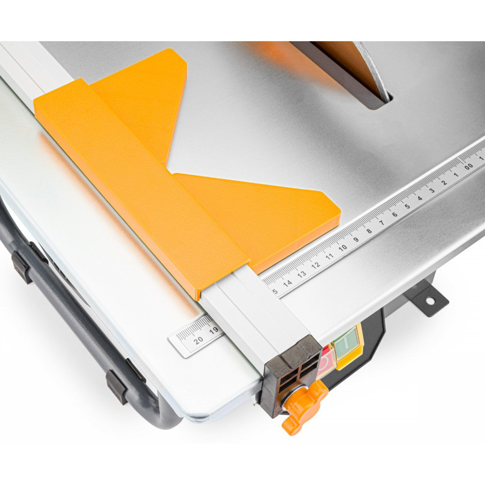 Setul include un ghid si un maner pentru taierea sub unghi si in „diamante”. Alinierea perfecta a ghidajelor permite taierea precisa. O scara laterala pe doua fete va facilita setarea precisa a dimensiunii. Fluturii solizi impiedica miscarea ghidului. Masa este fabricata din otel rezistent la coroziune. Picioarele din cauciuc asigura stabilitate.