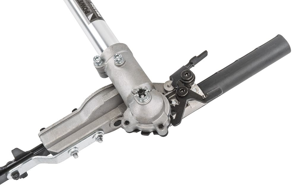 Dispozitivul combina functiile de coasa, masina de tuns, ferastrau cu lant si masina de tuns gard viu, permitand o gama larga de aplicatii.