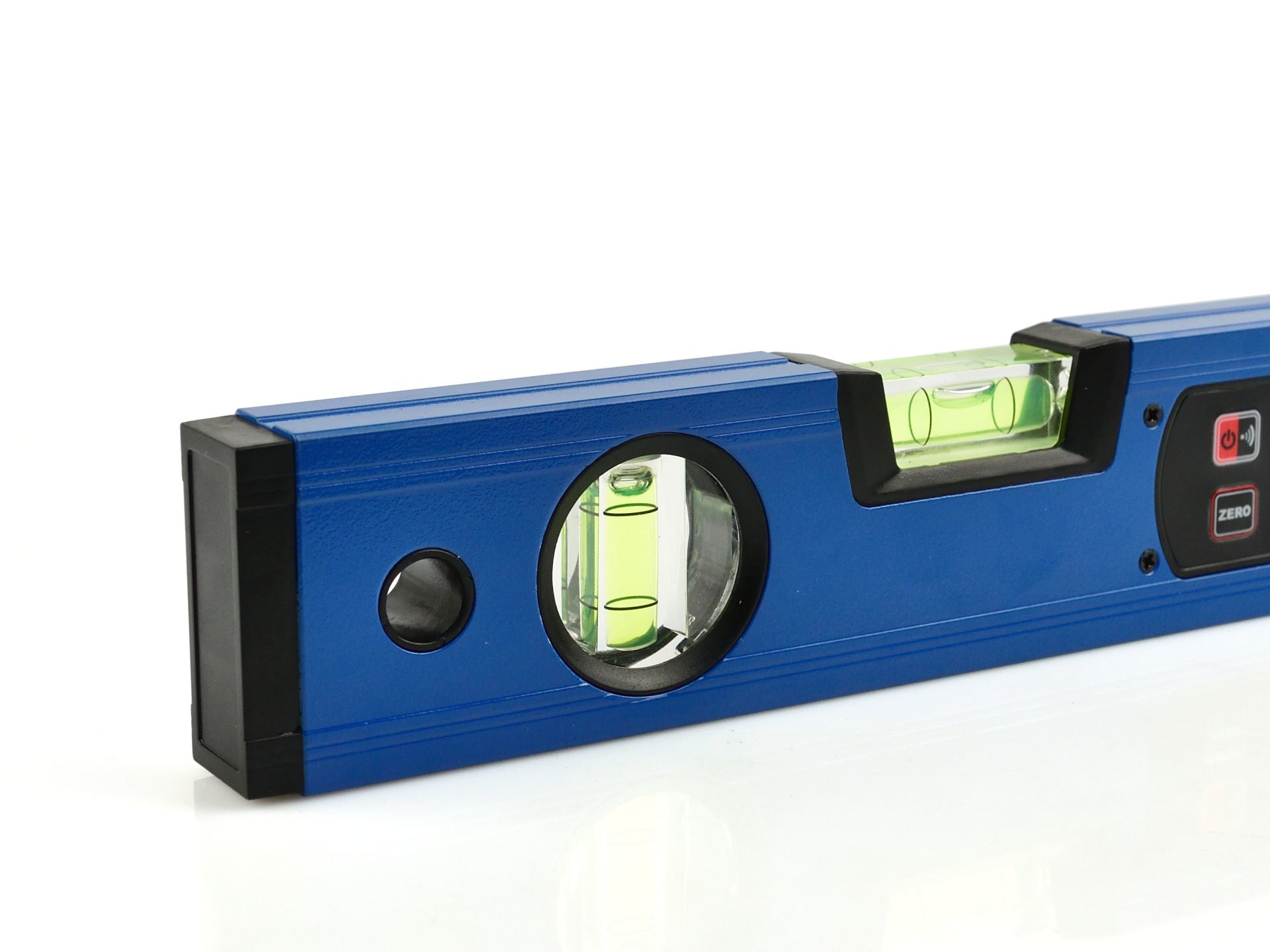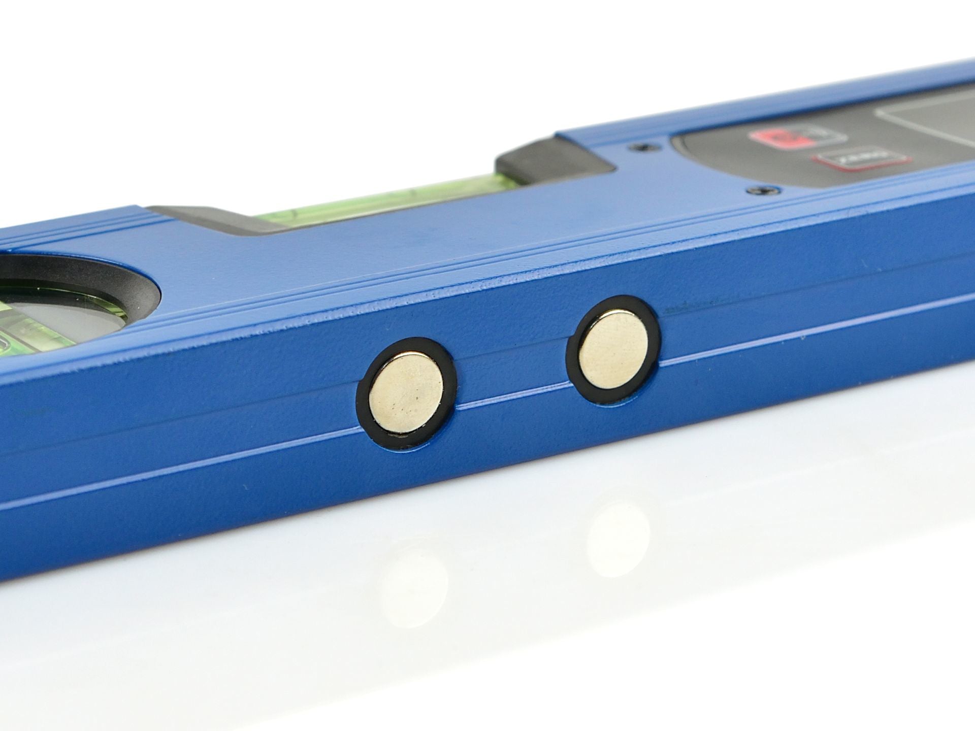 Nivela digitala de 400 mm lungime . Echipata cu 2 flacoane pentru determinarea verticala si orizontala si un afisaj lizibil cu iluminare din spate, cu care puteti masura cu precizie unghiul de inclinare . Corpul nivelei este realizat din aluminiu rezistent . Functia HOLD va permite sa pastrati masurarea curenta pe afisaj. Functia ZERO face posibila repunerea la zero a raportorului in orice pozitie si efectuarea unei masuratori de referinta. Aparatul este echipat cu 4 magneti puternici , care sunt extrem de utili atunci cand se efectueaza masuratori pe elemente din otel.