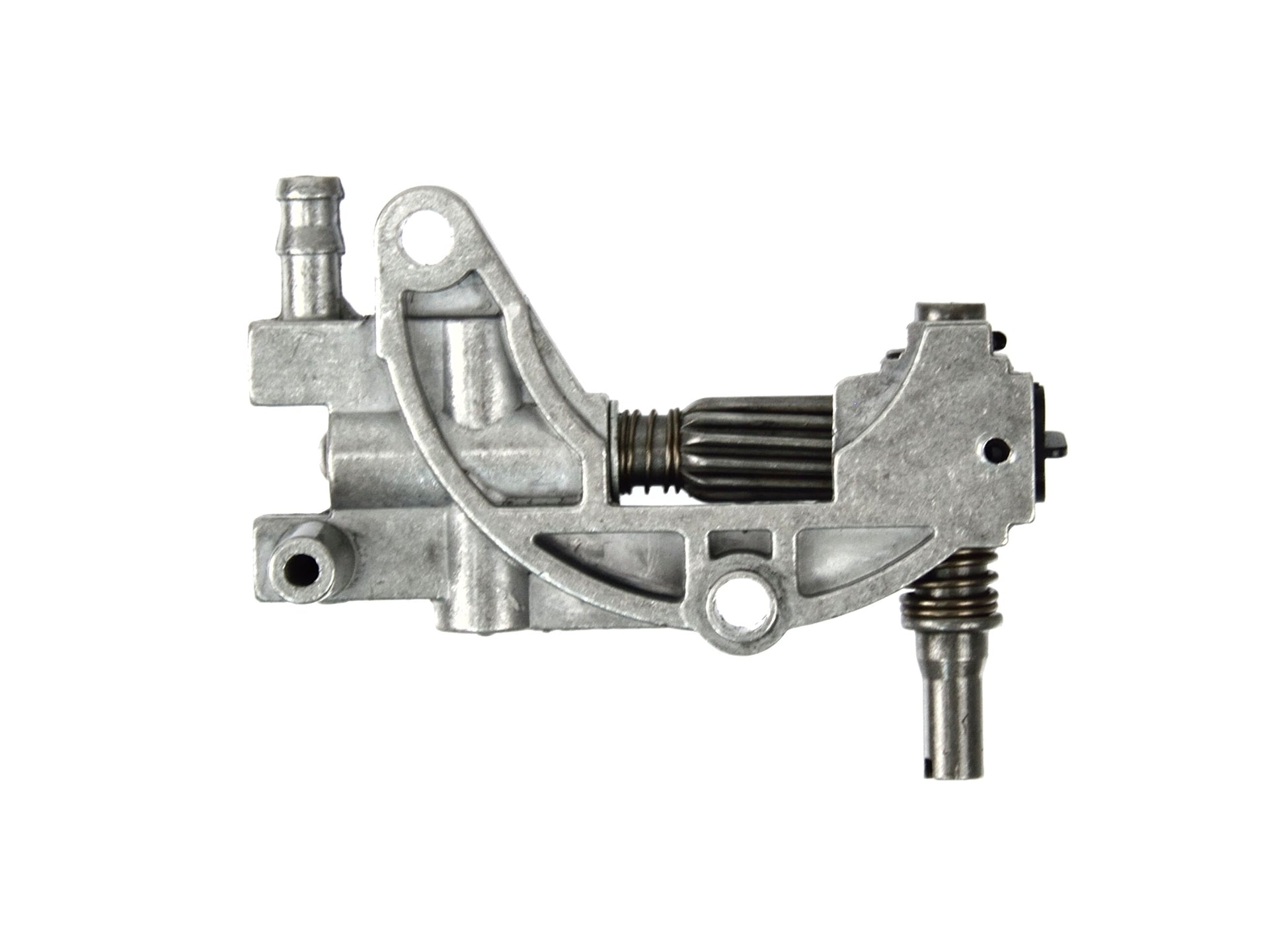 Pompă de ulei pentru ferăstrău pe benzină cu carter metalic.