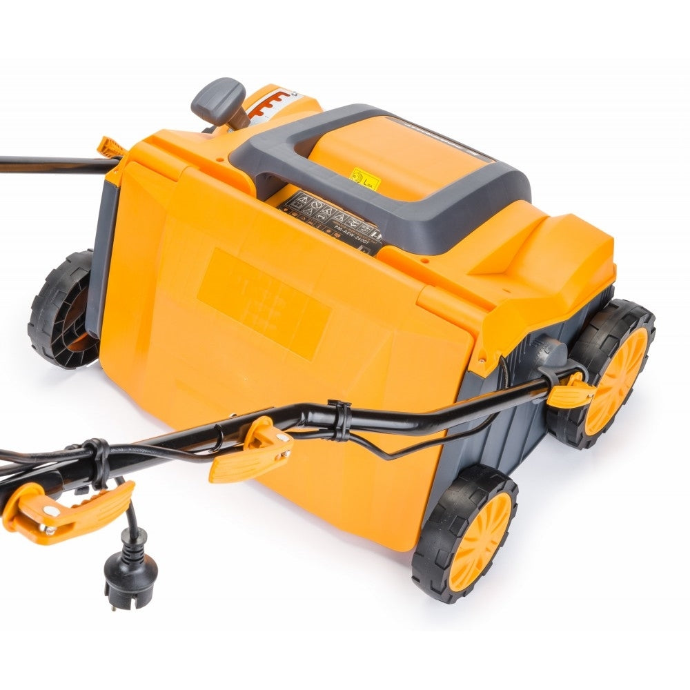 Aeratorul / scarificatorul electric Powermat PM-AEW-2600T este alimentat de un motor electric cu o putere maxima de 2600W, asigurand o eficienta de lucru adecvata. Scarificare - procesul de taiere a unui gazon pentru a indeparta gazonul vechi. Taierea gazonului asigura un aport mai bun de aer, apa si nutrienti. Acest lucru are un efect pozitiv asupra dezvoltarii sistemului radicular al plantelor. Aerarea - perforarea adanca a gazonului cu varfuri pentru a desface si aera solul. Sub influenta aeratiei, radacinile ierbii devin mai puternice si gazonul se aliniaza. Acest tratament accelereaza semnificativ regenerarea gazonului dupa iarna. De asemenea, dispozitivul ajuta la indepartarea mucegaiurilor, precum si a muschilor si buruienilor, distrugand inradacinarea acestora. Iarba cu un sistem de radacina mai profund nu este deteriorata si aspectul acesteia este imbunatatit semnificativ Datorita tratamentelor de scarificare si de aerare, gazonul este furnizat in mod optim cu aer, apa si nutrienti.