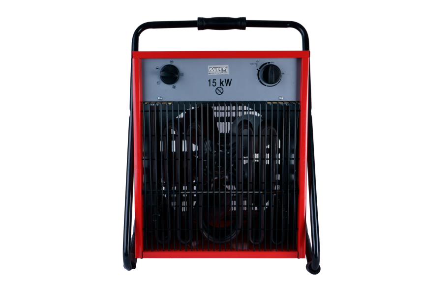 Aeroterma electrică: Aeroterma electrică de la Raider este destinată incălzirii spațiilor de maxim 120 metri cubi. Aerotermă se poate utiliza pentru incălzirea locuințelor, garaje, birouri, spații comerciale, etc și foarte important: nu degajă fum, miros sau umezeală ceea ce face din aceasta aerotermă un apărat ideal în orice situație. Reglarea temperaturii din buton, termostat inclus. Acoperită de o bară rezistentă pentru protecție și transport facil.