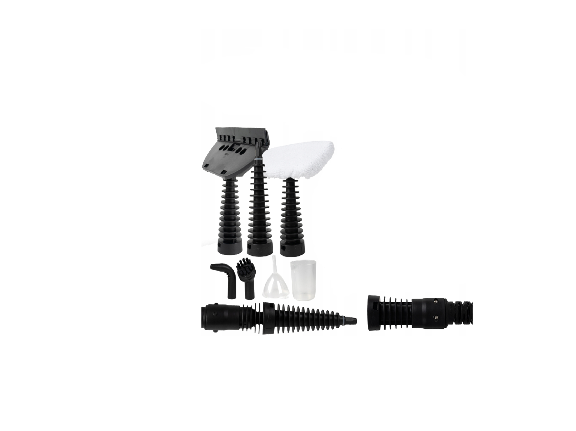 Printre acestea se numara furtunul de prelungire – faciliteaza perfect curatarea in locurile stramte, perii de duritate diferita pentru curatarea detaliilor, o perie de chit care curata perfect colturile cele mai contaminate ale placilor ceramice.