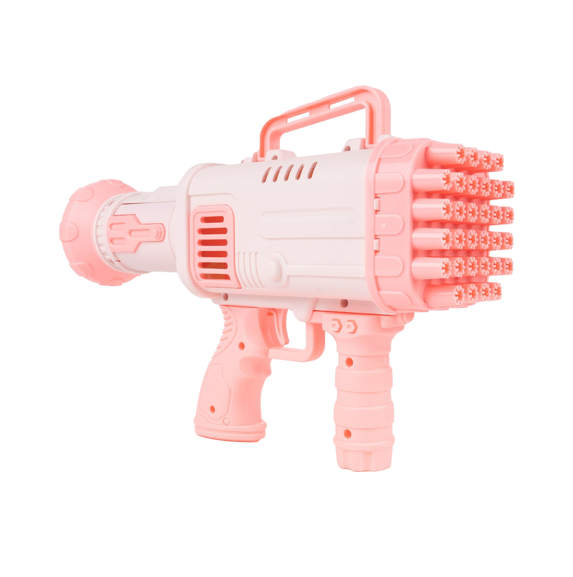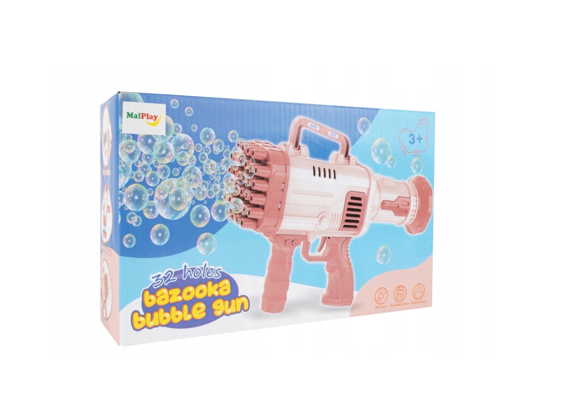 Turnati lichidul in recipientul inclus in kit si apoi scufundati gaurile de pe partea din fata a pistolului in el. Apasati declansatorul bazooka si gata! Din acest moment, va puteti bucura de privelistea unor bule frumoase, curcubeu, care plutesc in aer, care ies din 32 de gauri simultan!