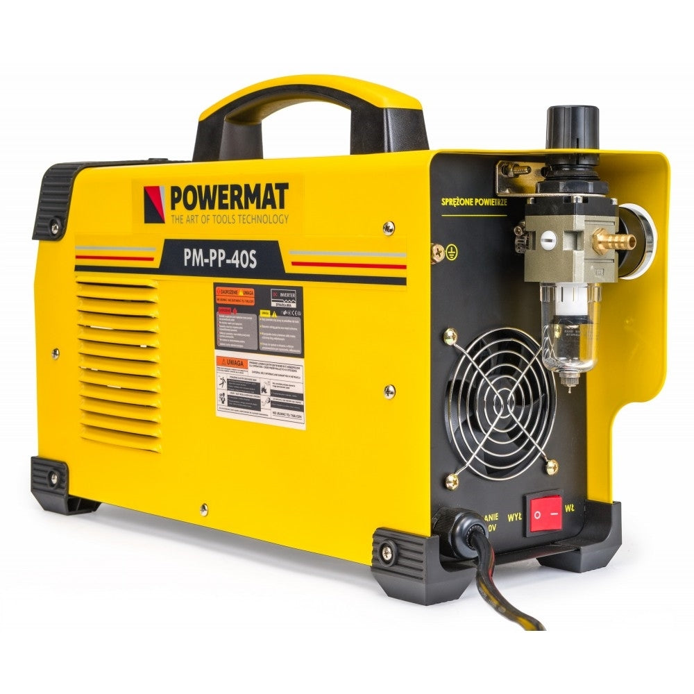 Cutterul cu plasma Powermat PM-PP-40S permite taierea materialelor conductoare electric, precum aliat, aliaj, otel pretios, aluminiu, cupru, nichel sau fonta. Dispozitivul realizat in tehnologia IGBT. Aceasta tehnologie, precum nicio alta, ofera cele mai mari performante. In comparatie cu cantitatea de energie consumata, obtinem peste o cantitate proportionala de putere. Curentul de taiere este foarte stabil, ceea ce garanteaza o calitate ridicata a taierii. Dispozitivul este usor si compact, datorita tehnologiei IGBT. Permite taierea cu un curent de pana la 40 amperi, intr-un ciclu de serviciu de 60 la suta, ceea ce permite taierea materialelor cu o grosime de pana la 12 mm. In plus, dispozitivul initiaza arcul in modul HF ( aprindere de inalta frecventa ) - termenul defineste initierea fara contact a unui arc electric folosind frecventa inalta, ceea ce creeaza un punct de pornire curat. Avantajul taierii cu plasma folosind aer comprimat este capacitatea de a taia la viteze mari, mentinand in acelasi timp o suprafata de taiere de inalta calitate. Capacitatea de a taia fara a arde materiale subtiri si un mic decalaj de taiere sunt alte avantaje ale taierii cu plasma. Nu este necesar un gaz scump. Utilizarea aerului comprimat normal si functionarea usoara garanteaza utilizarea fara probleme in zonele de constructie a caroseriei auto, rezervoare, constructii din otel, incalzire, aer conditionat, precum si in zona echipamentelor sanitare si a altor instalatii. Datorita unui maner proiectat corect, taierea cu plasma este precisa si fara oboseala pentru operator. In plus, cablurile de sudare conectate la maner sunt protejate de o impletitura speciala care ii protejeaza impotriva factorilor externi, precum si faciliteaza organizarea lor in timpul lucrului. Panoul de control confortabil si lizibil al dispozitivului permite functionarea chiar si cu manusi de sudare pornite. Avantajul taietorului este mobilitatea sa. Greutatea redusa impreuna cu dimensiunile compacte, manerul de transport confortabil - stabil creste semnificativ confortul muncii. Dispozitivul este racit de un ventilator de mare viteza. Intrerupatorul termic deconecteaza dispozitivul in cazul depasirii ciclului de functionare admisibil pentru un curent de sudare dat, acest lucru impiedica supraincalzirea frezei.