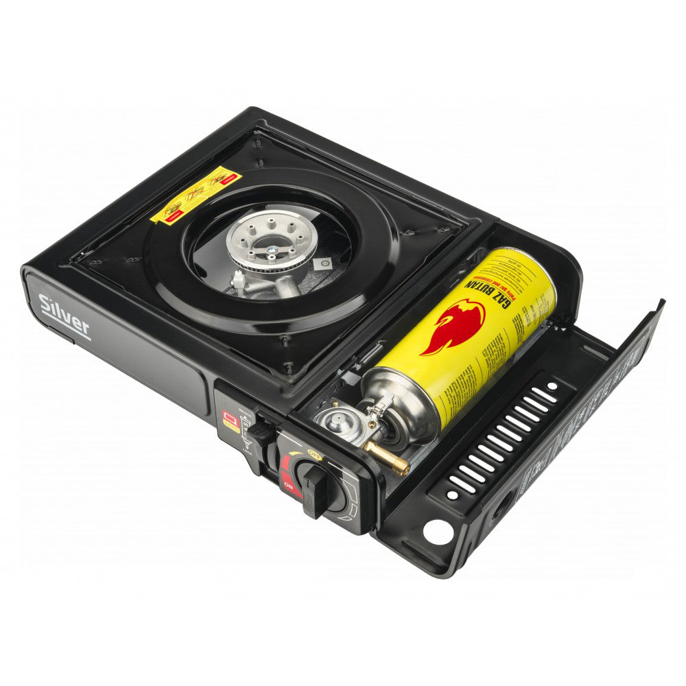 Aragazul este alimentat cu cartuse standard de gaz (cartuse 400ml / 220g) sau dintr-o sticla turistica.