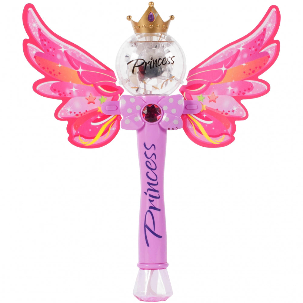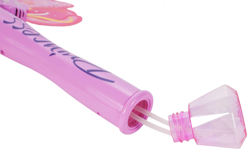 Bulele de sapun sunt un joc preferat de copii mici. Bagheta senzationala pentru a face bule de sapun va oferi multa bucurie fiecarui copil. Admirati zeci de bule de sapun de culoare curcubeu care se ridica in aer. Pentru a incepe sa jucati, introduceti bateriile, turnati lichidul in recipientul din partea de jos si apasati butonul. Dupa un timp, o melodie va incepe sa se joace, luminile vor incepe sa clipeasca si zeci de bule de sapun vor iesi din coroana. In timp ce se joaca, bulele de sspun zboara din coroana. Este insotit de o melodie vesela si diode LED intermitente situate in mingea baghetei.