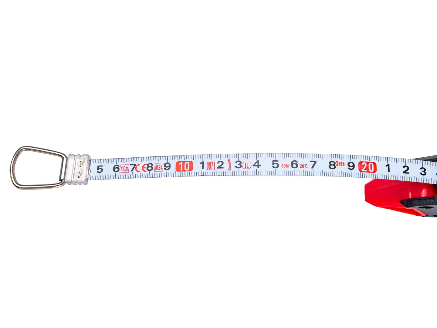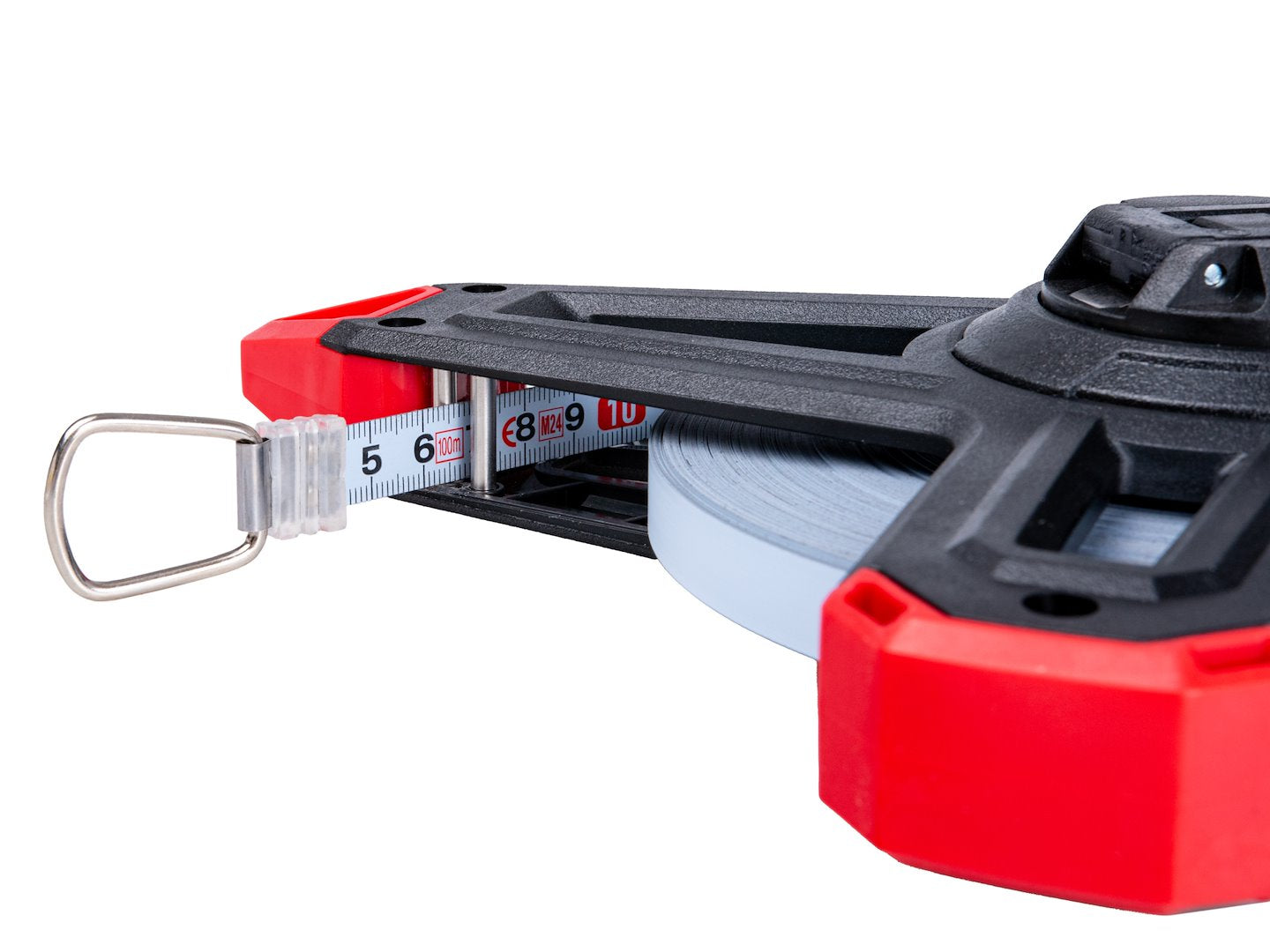 - Carlig metalic robust: Asigura fixarea stabila a benzii la punctul de plecare, contribuind la masuratori precise si usoare.