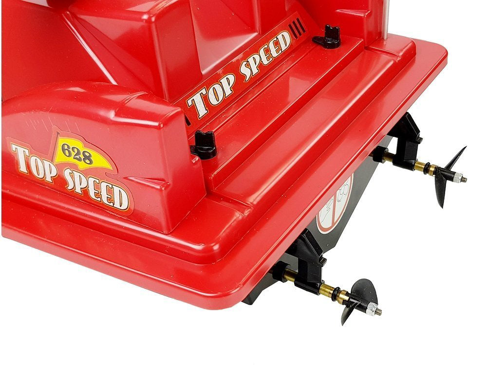 Barca cu telecomanda este realizata dintr-o singura bucata de plastic, astfel incat nu exista gauri in structura care sa permita patrunderea apei. Dimensiunea sa este uimitoare, are 78 cm! In partea de jos a structurii sunt 2 motoare pentru miscare inainte si inapoi si rotire dinamica. Telecomanda transmite pe o frecventa de 27 Mh, va permite sa conduceti inainte, inapoi, stanga si dreapta. Are manere confortabile. In plus, setul include o antena care va creste raza de actiune.