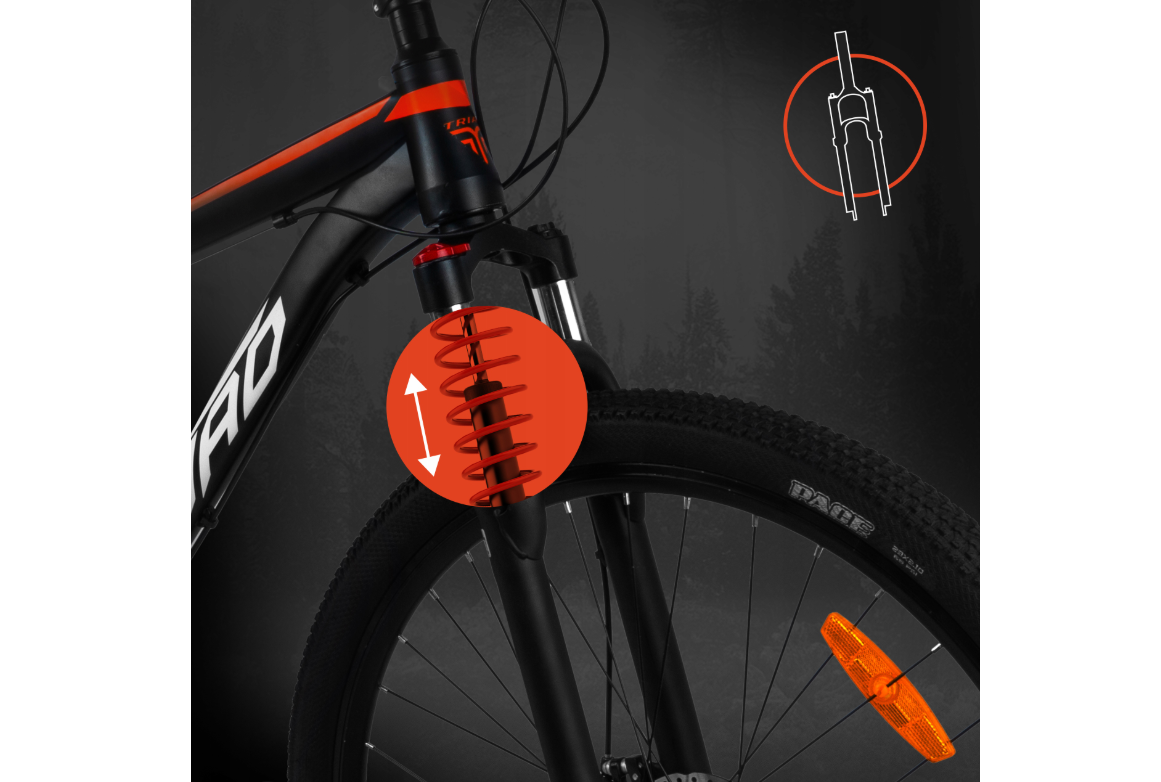 - Suspensie: Furca cu amortizare pentru confort pe teren accidentat