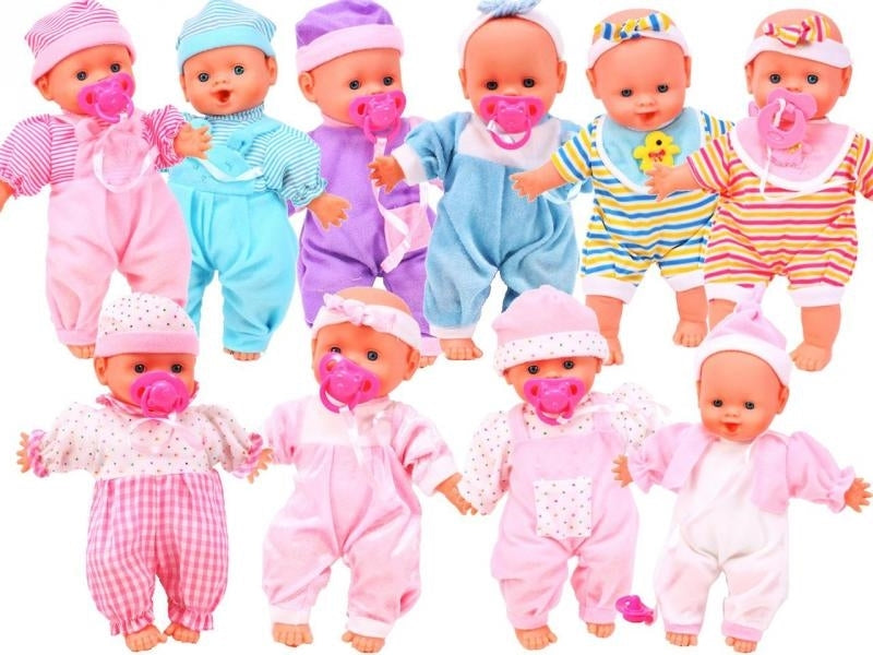 Modele diferite, papusa - burta moale, cap, manere si picioare de cauciuc. suzeta - se poate pune in gura.