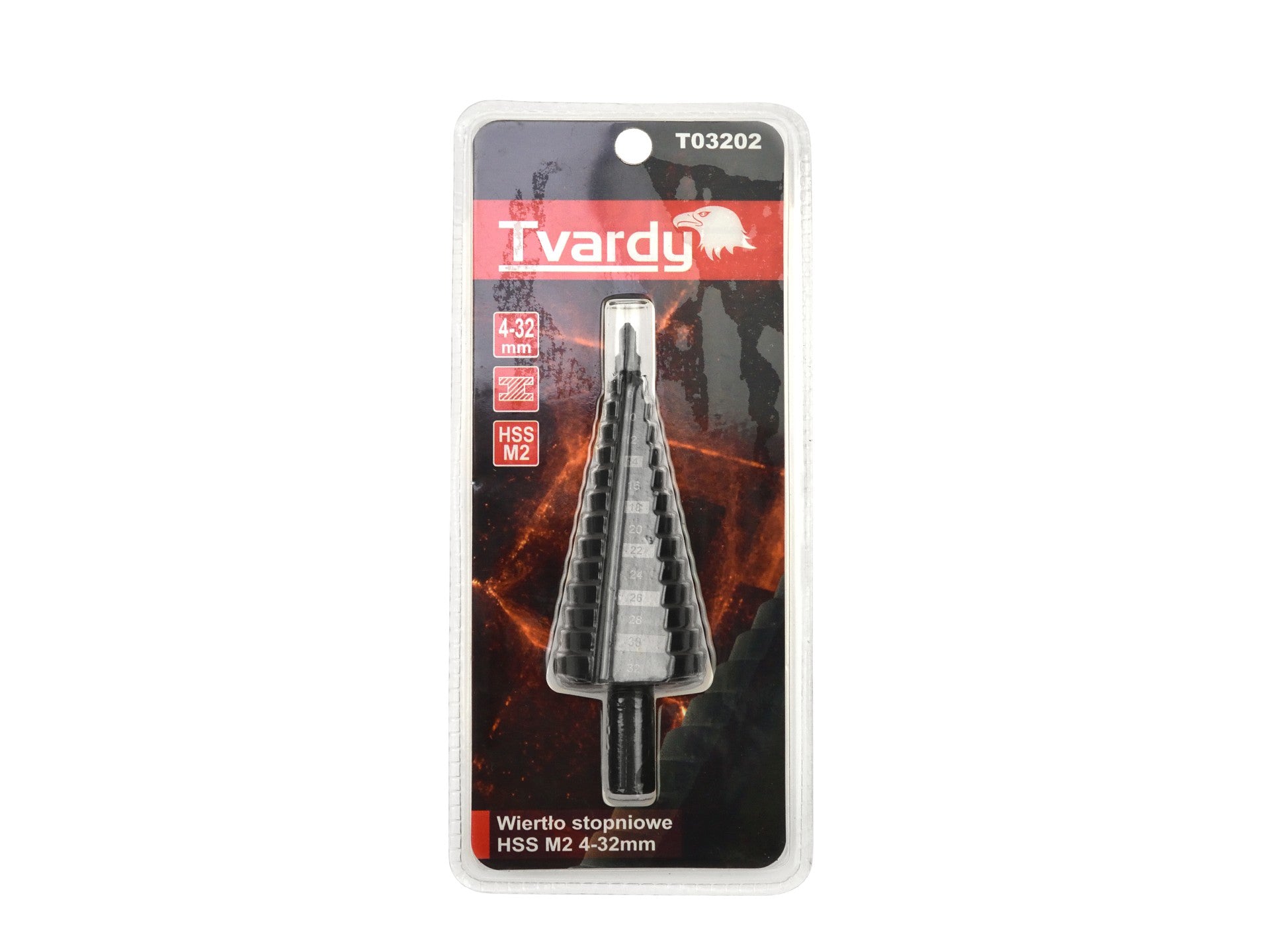 Burghiu in trepte HSS M2 4-32 mm, Tvardy fabricat din otel de mare viteza HSS M2 de cea mai inalta calitate cu acoperire TiAlN . Burghiu treptat la fiecare 2 mm cu maner cilindric si numerotare lizibila. Destinat pentru metale, table de otel cu pereti subtiri, materiale plastice .